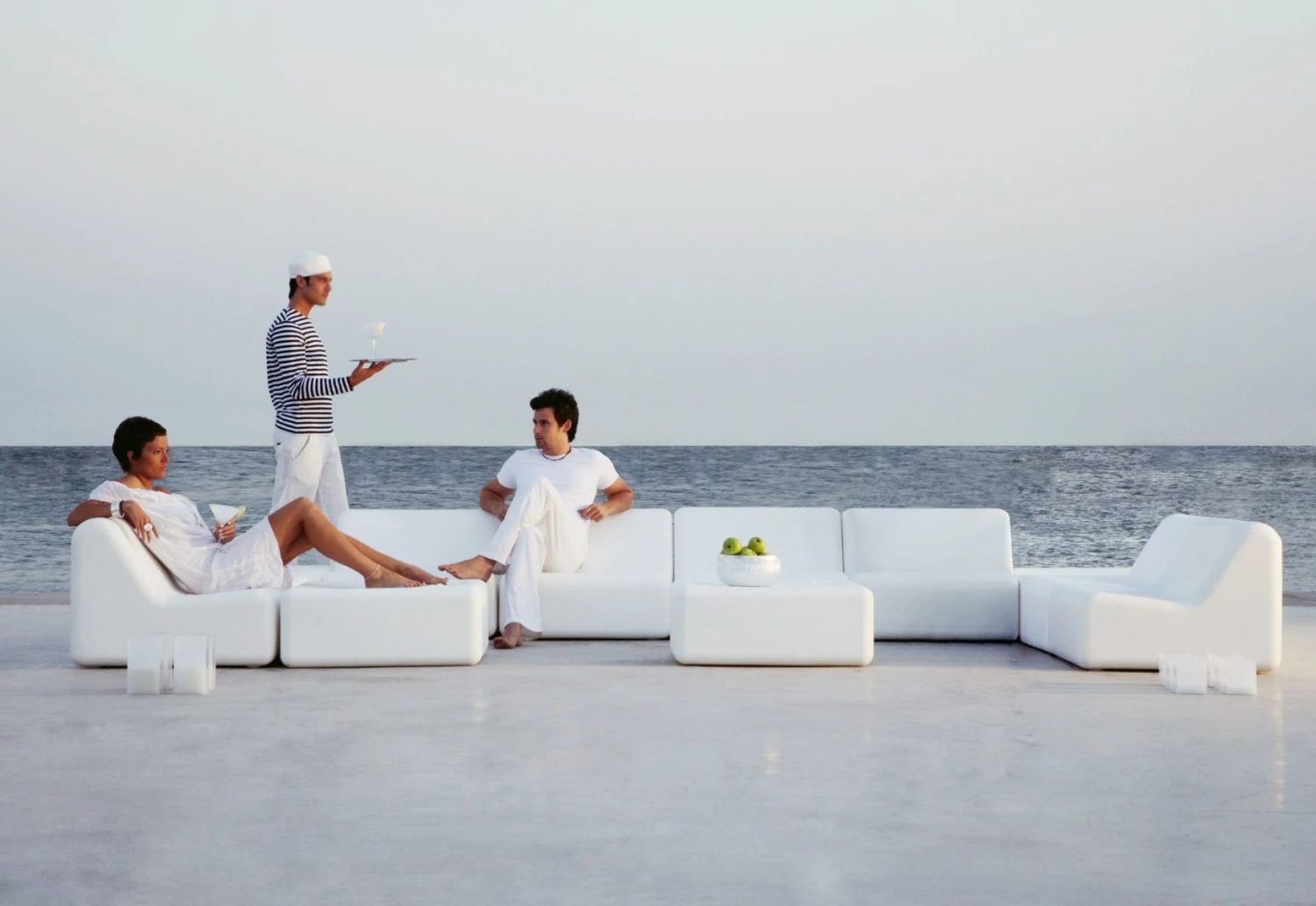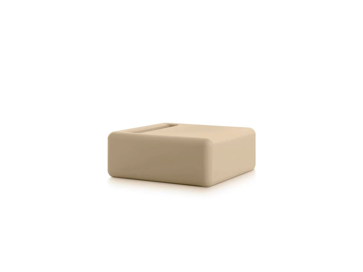 356 is an outdoor collection with design that make a strong impact. This is an item that hardly goes unnoticed thanks to its aerodynamic look, inspired by the first Porsche 356 cars from the 1950s. It’s made from 100% recyclable polyethylene, it is particularly ergonomic, comfortable and durable. It has a very particular design, with a groove that runs all along one side of the table. This ingenious detail has plenty of uses, for exmple to put drinks or snacks in so that you can use the rest of the surface as a seat or footrest.