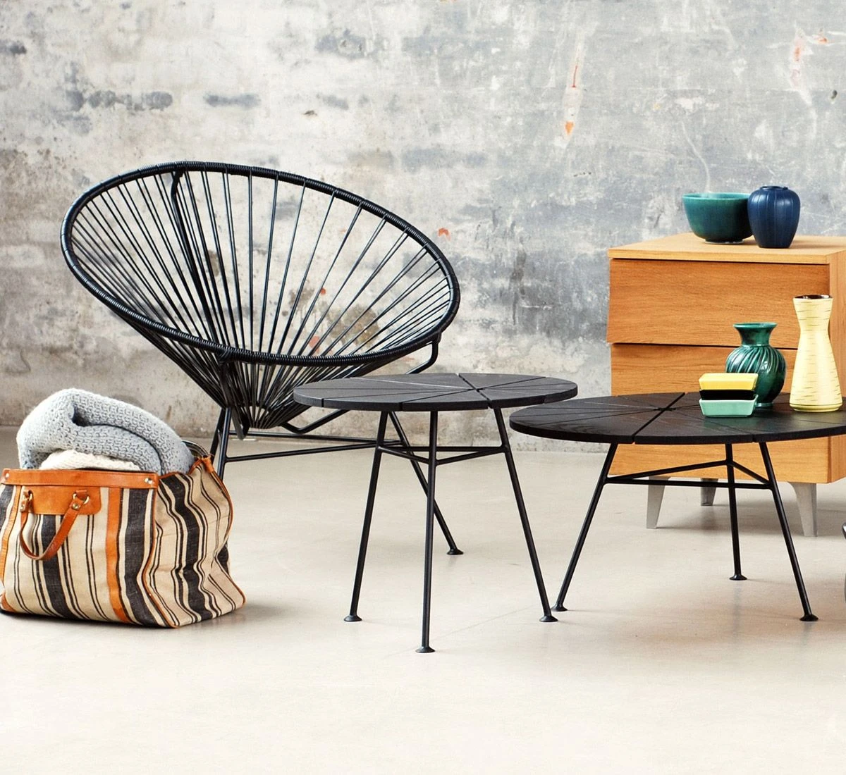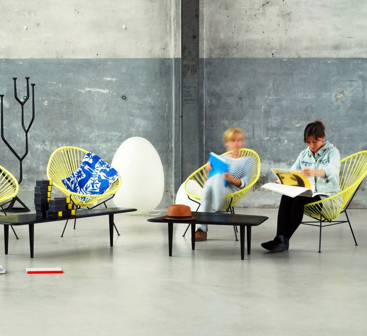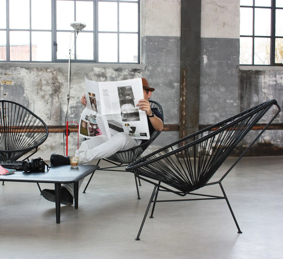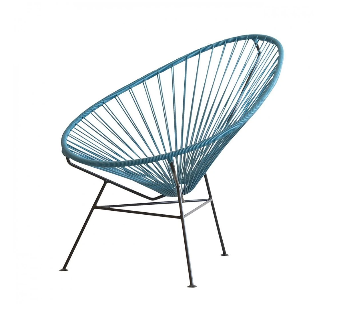 Acapulco Chair was made in Mexico in 1950 when the homonymous village from which it takes its name was a favorite of Hollywood stars and American jet set. Today this chair shaped like a sunburst continues to be an icon of design produced by hand as fifty years ago in plastic rope stretched over a metal frame powder-coated black. A wonderful session, and by the spirit of retro glamor, suitable for use both indoors and outdoors. Light, comfortable and resistant to heat and weathering, Acapulco will give an exotic effect to your terrace or garden. Mexican glamor with a touch of nostalgia Hollywood.