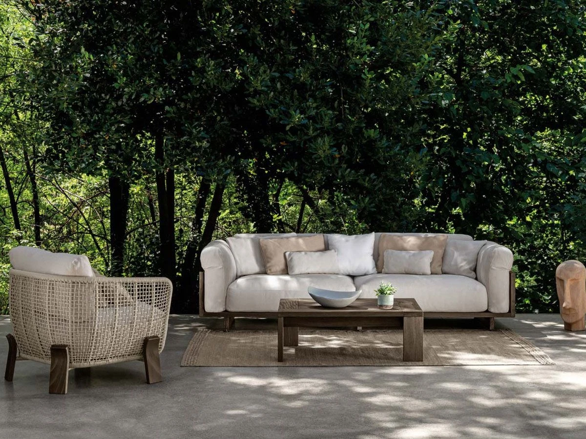 Materials and fabrics resistant to atmospheric agents respond to the need to furnish an outdoor living room in a functional way.
