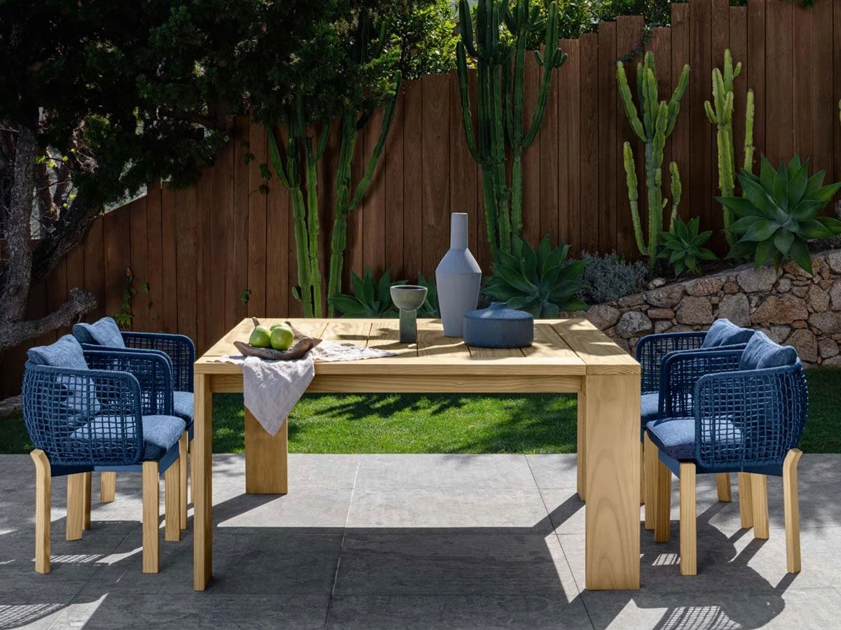 Argo is a welcoming collection of outdoor furniture designed by Ludovica and Roberto Palomba for Talenti. The series consists of several models, including modular sofa and love seat sofa, dining chair, sunbed, dining table and coffee tables.