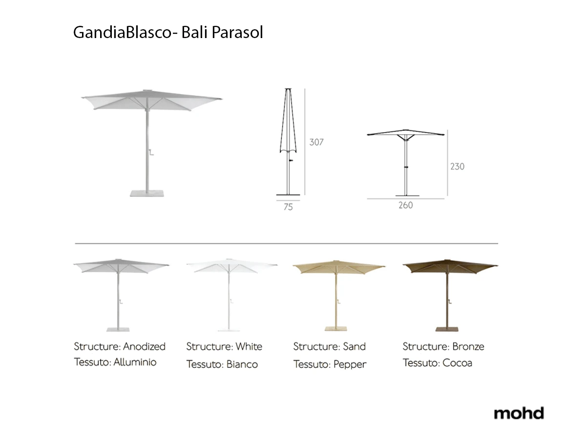 Bali is an parasol simple and clean lines, attention to detail, expresses good taste from the first glance. Proportionate in size will give you the possibility to easily adapt it to external foolish.