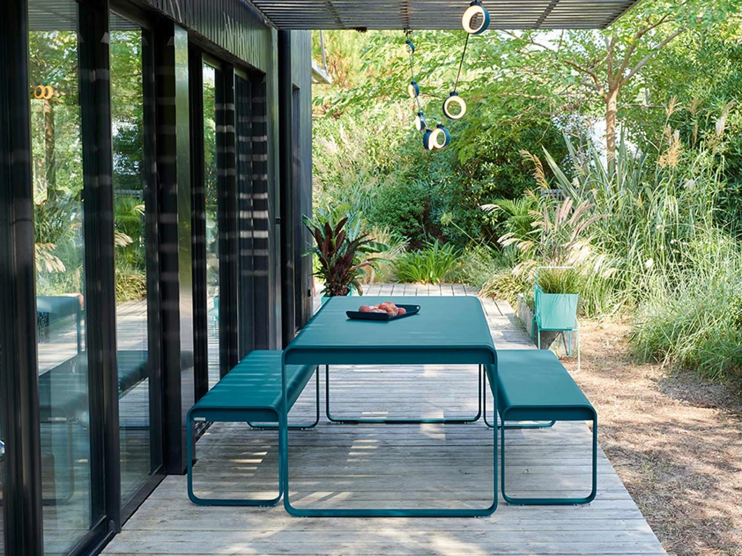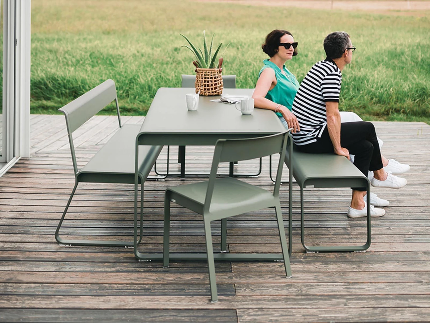 Designed by Pagnon & Pelhaître for the brand Fermob, Bellevie is an outdoor table made in treated aluminum.