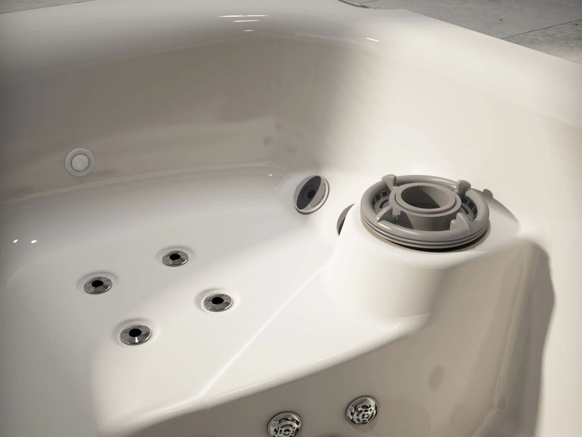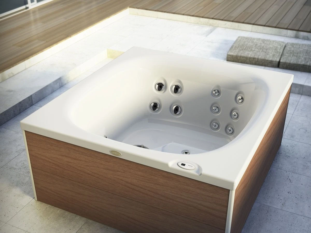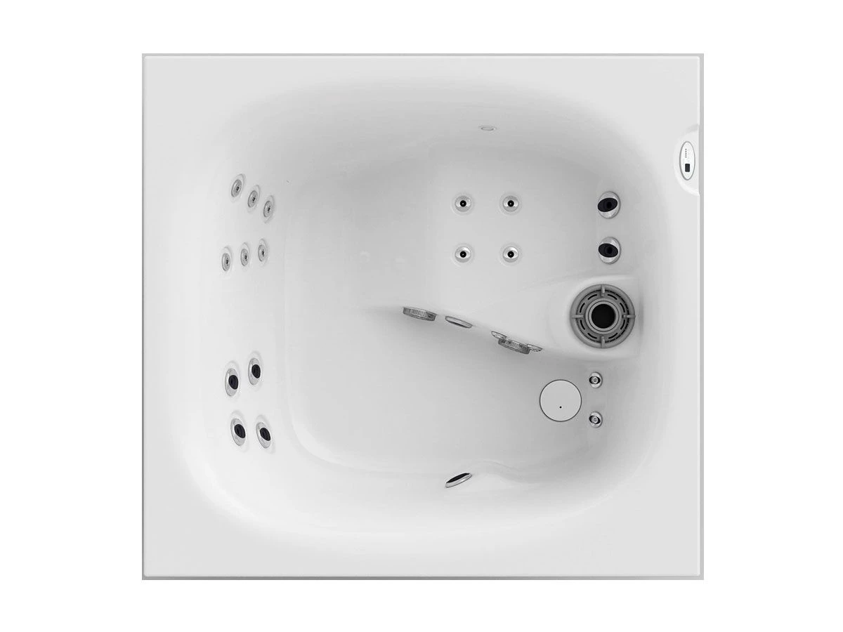 Thanks to the two lounge seats and the whirlpool jets positioned at 30 °, it offers, in just 2.4 square meters, the sharing of a real professional whirlpool and the treatment of a real Spa, both indoors and outdoors. With its compact size and low load on the floor, it can be installed anywhere and is the ideal solution both at home, in small wellness centers or in shared hotel spaces.