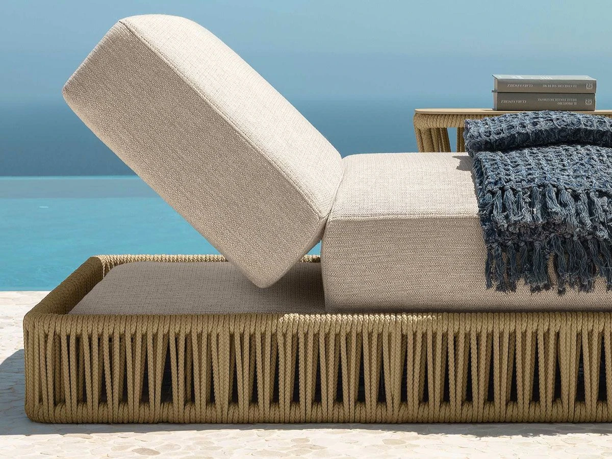 This sunbed is part of this exclusive series of furnishing elements created to complete a garden, a veranda or a poolside. Perfect for intimate and private spaces, and ideal for a luxurious resort. Rope braiding can be found in the other elements of the collection and makes this element perfectly in line with the idea of comfort and naturalness.