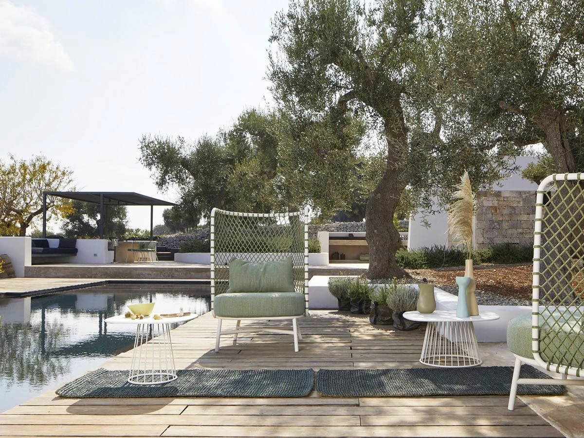 GT Design registered Coconutrug as an independent company brand back in 1998, being among the first to use coconut fibre for the creation of designer carpets. Coconutrug – Sempreverde is hand-woven from high-quality coconut fibre, a durable and robust material, and coated with waterproof resins. It is woven on traditional looms by skilled craftsmen trained in the use of coconut fibre, the primary source for ordinary tools such as baskets and ship ropes. Coconutrug I Glassati Sempreverde is a rug that is easy to disassemble, light to transport and takes up little space when not in use.