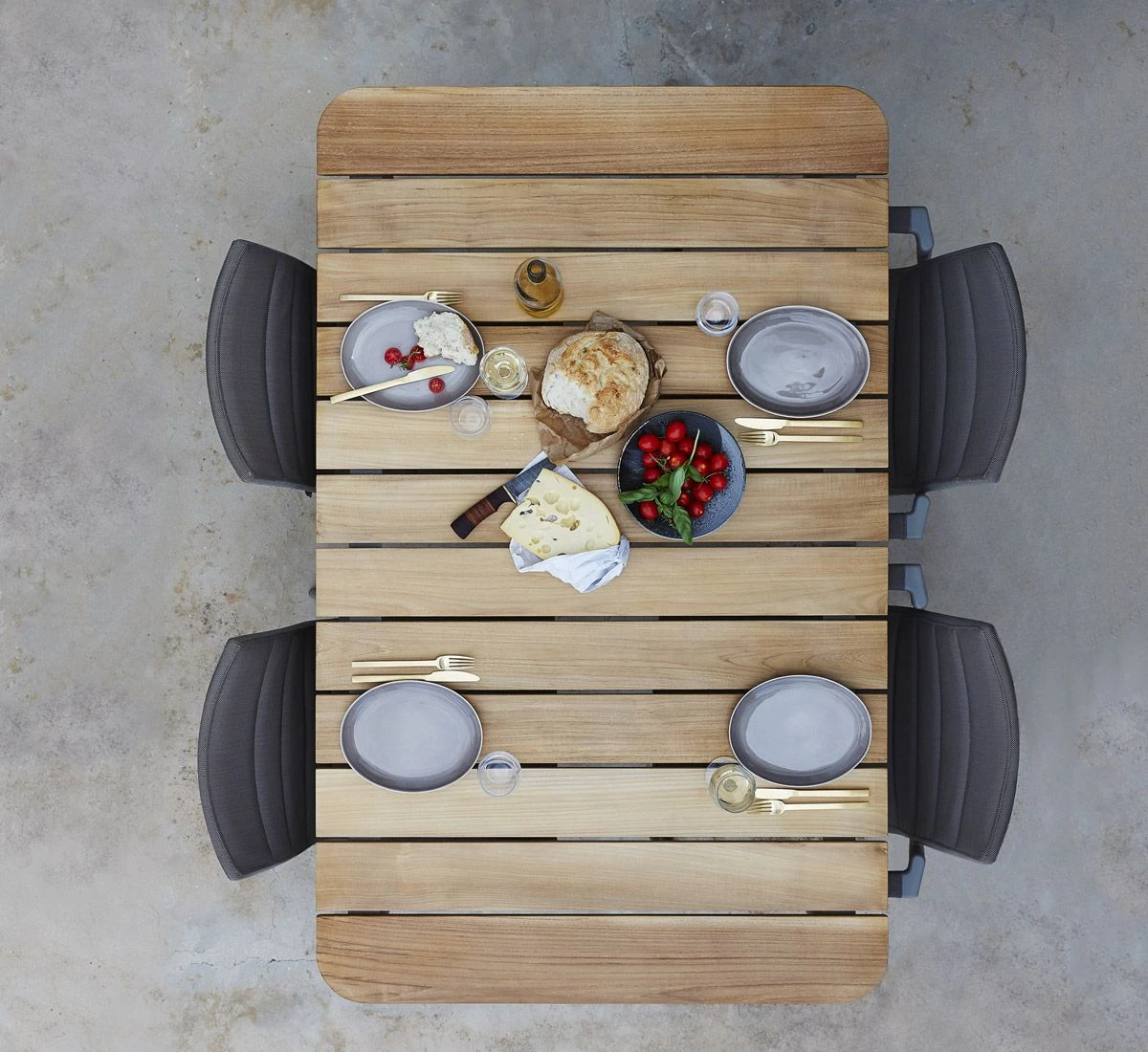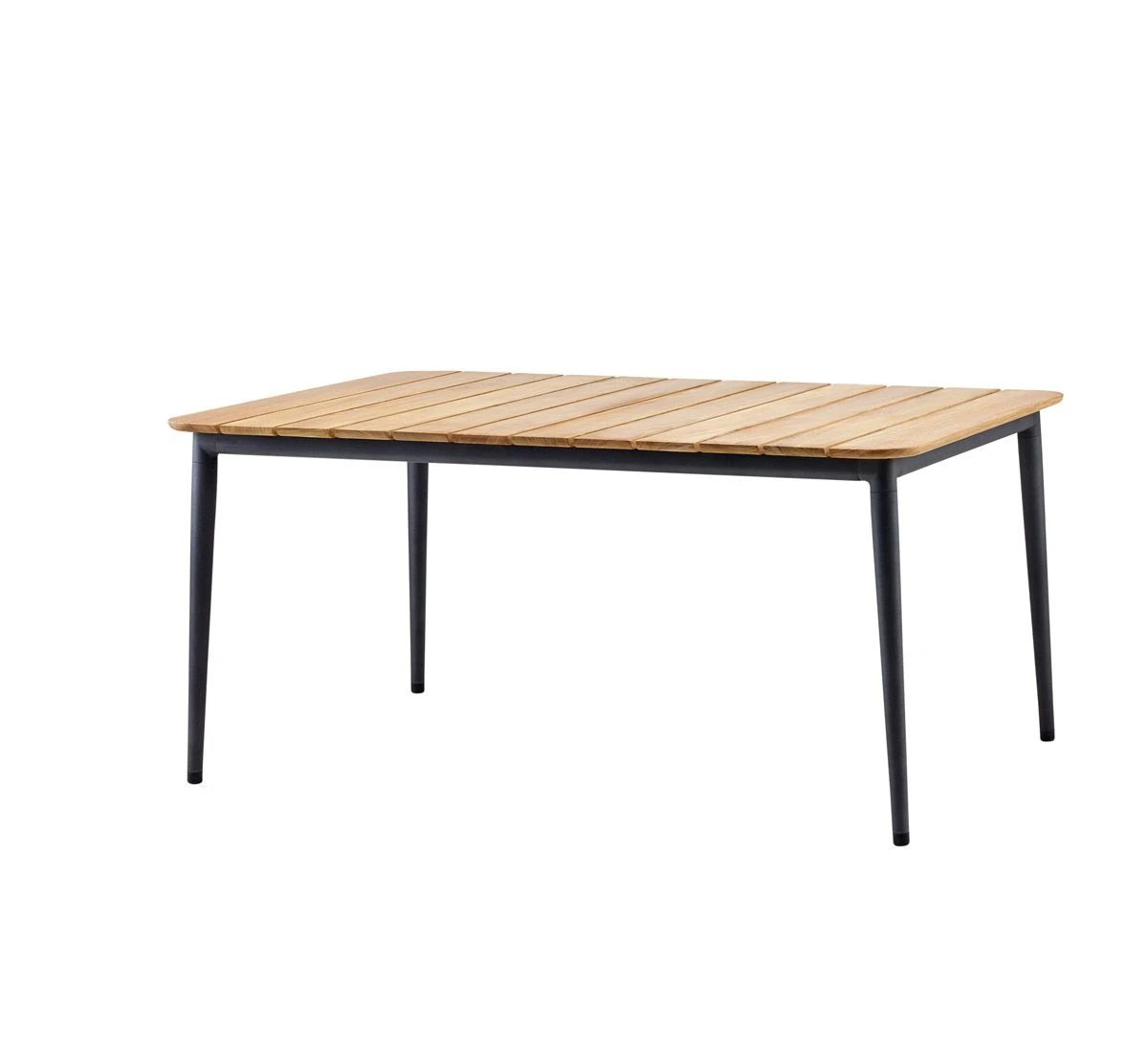 Cane-line’s new table Core combines the classic with the modern and lifts the use of teak in outdoor furniture to new levels. The soft curves of the table top are paired with a frame of conical pipes in powder coated aluminium. The result is a table that in spite of its light appearance is very strong and hardwearing. The teak slats are hand-selected and of highest quality, supplied by WWF/GFTN certified members in Indonesia. The Core tables come in three different sizes and two frame colours enabling you to find the right table for your needs