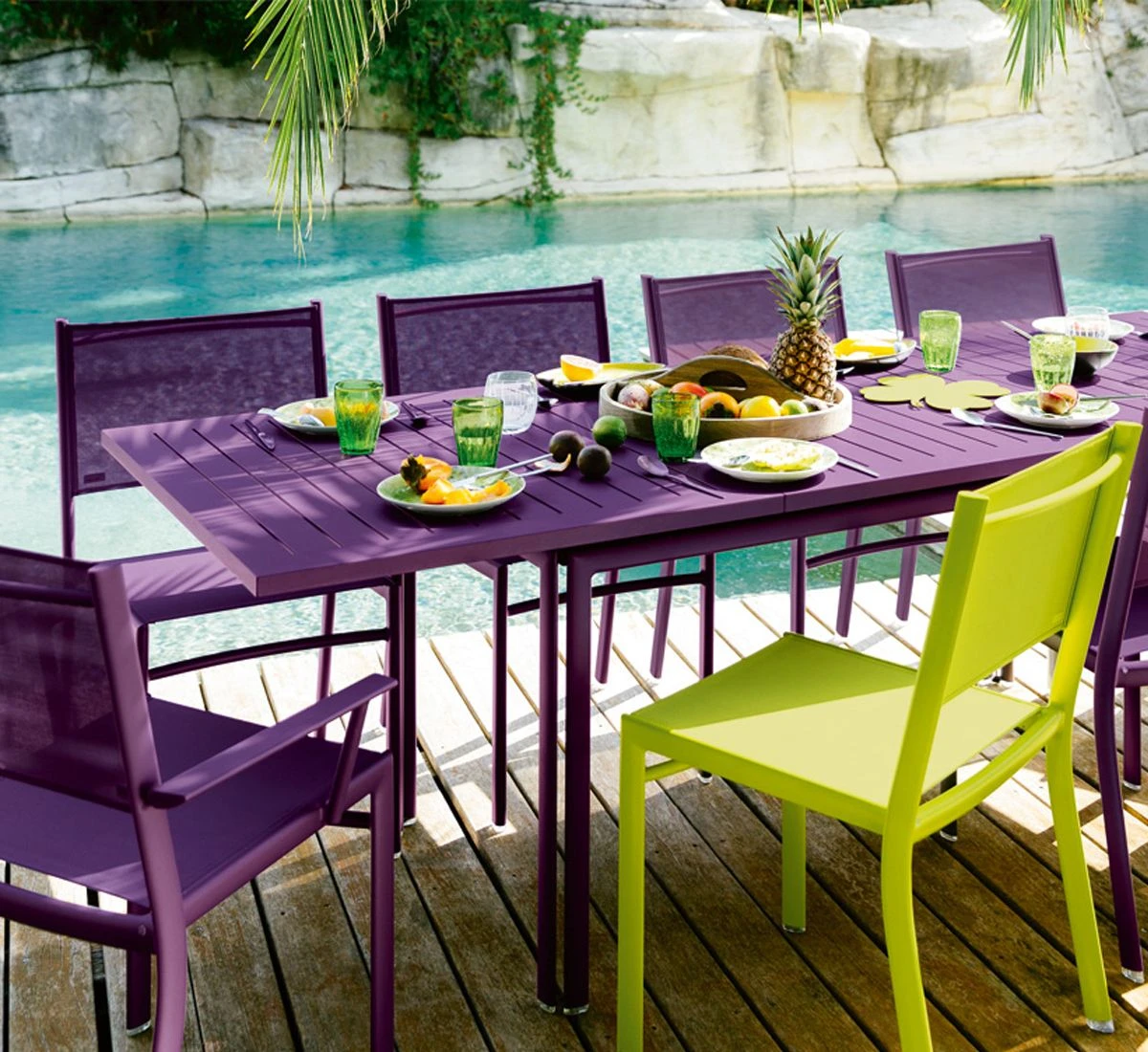 Costa table with central extension is part of the Outdoor Collection from brand Fermob. Removable and ideal for 6/10 people has aluminum frame and a high protection treatment for outdoor use. The clean, modern design of the removable table with central extension Costa is a constant of the entire collection, suitable for young and fresh environments. Bright colors and powder coating anti-UV for an absolute guarantee of protection for outdoor use and 3 years of warranty. The collection includes pieces of furniture Outdoor design delicate and simple, practical and light, perfect for those who want to enjoy every sip of summer.