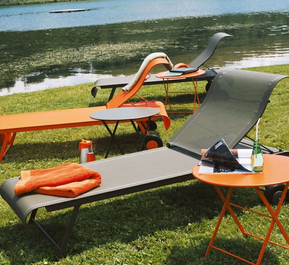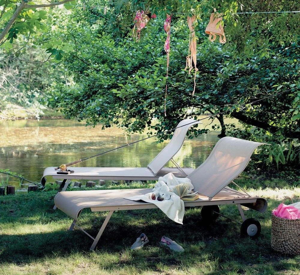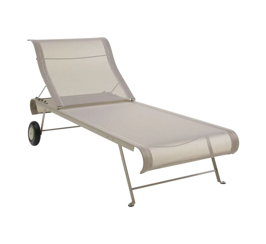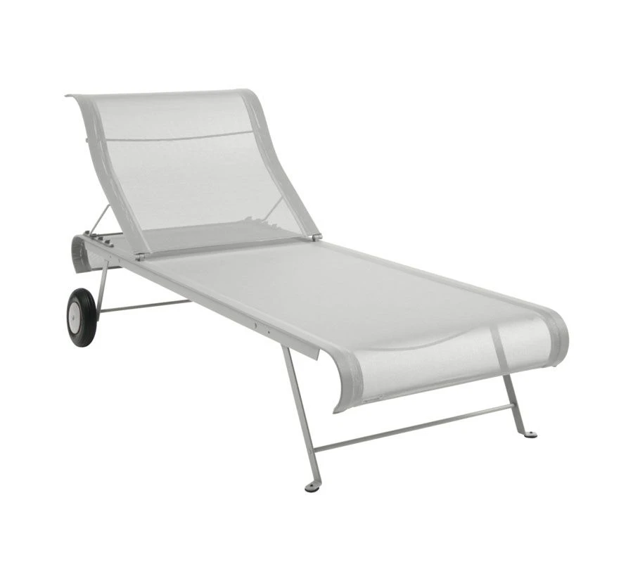 Designed by Pascal Mourgue for the brand Fermob, Dune is a sunlounger made in steel and fabric for outdoor use.