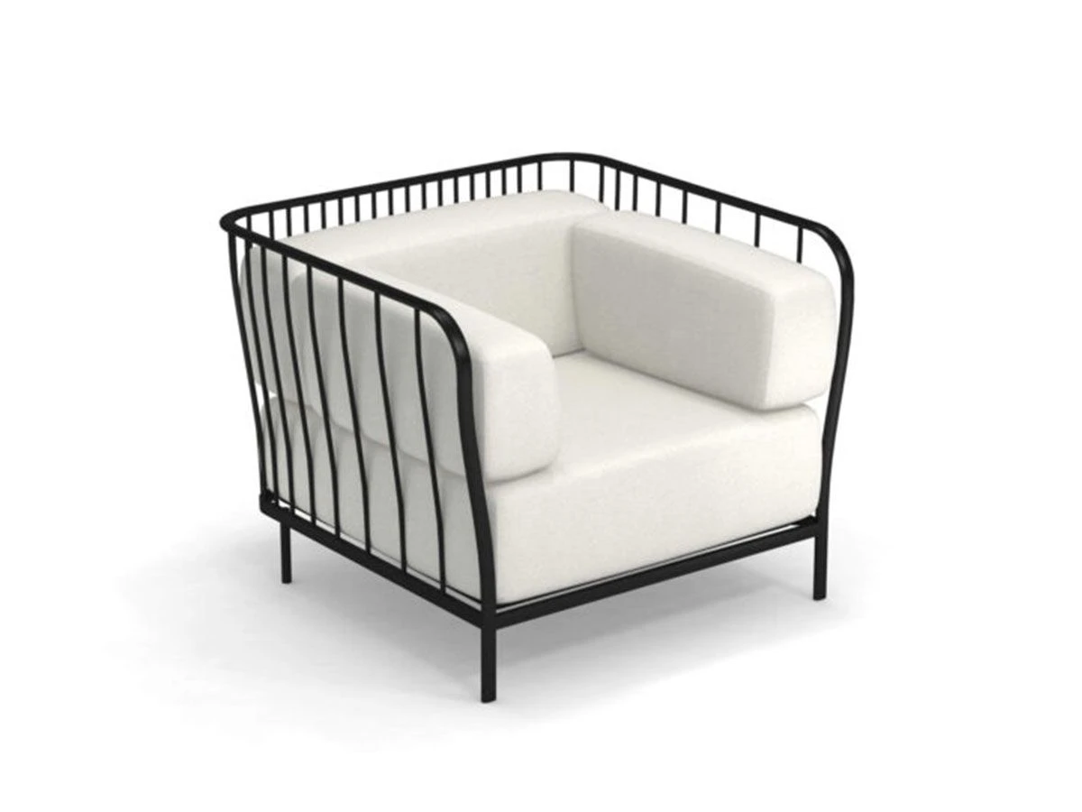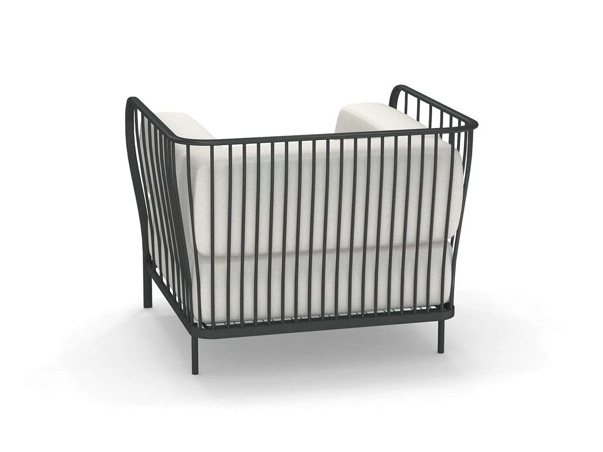 The Cannolè armchair is part of a collection of products designed by Anton Cristell and Emanuel Gargano for Emu. The structure is made of painted galvanized steel tubular, the seat is composed of a grid of galvanized rod welded on a square of rod while the legs are made of tubular steel.
