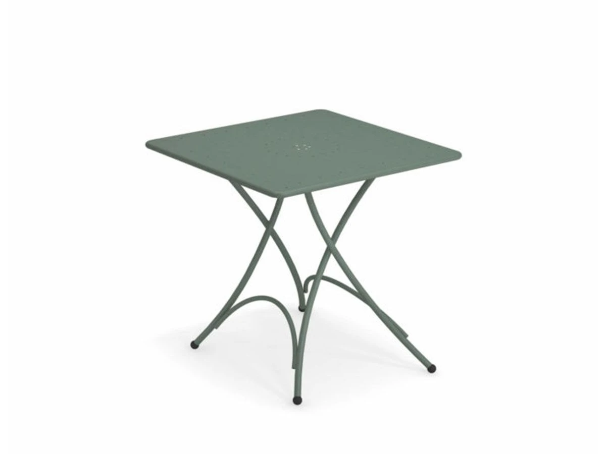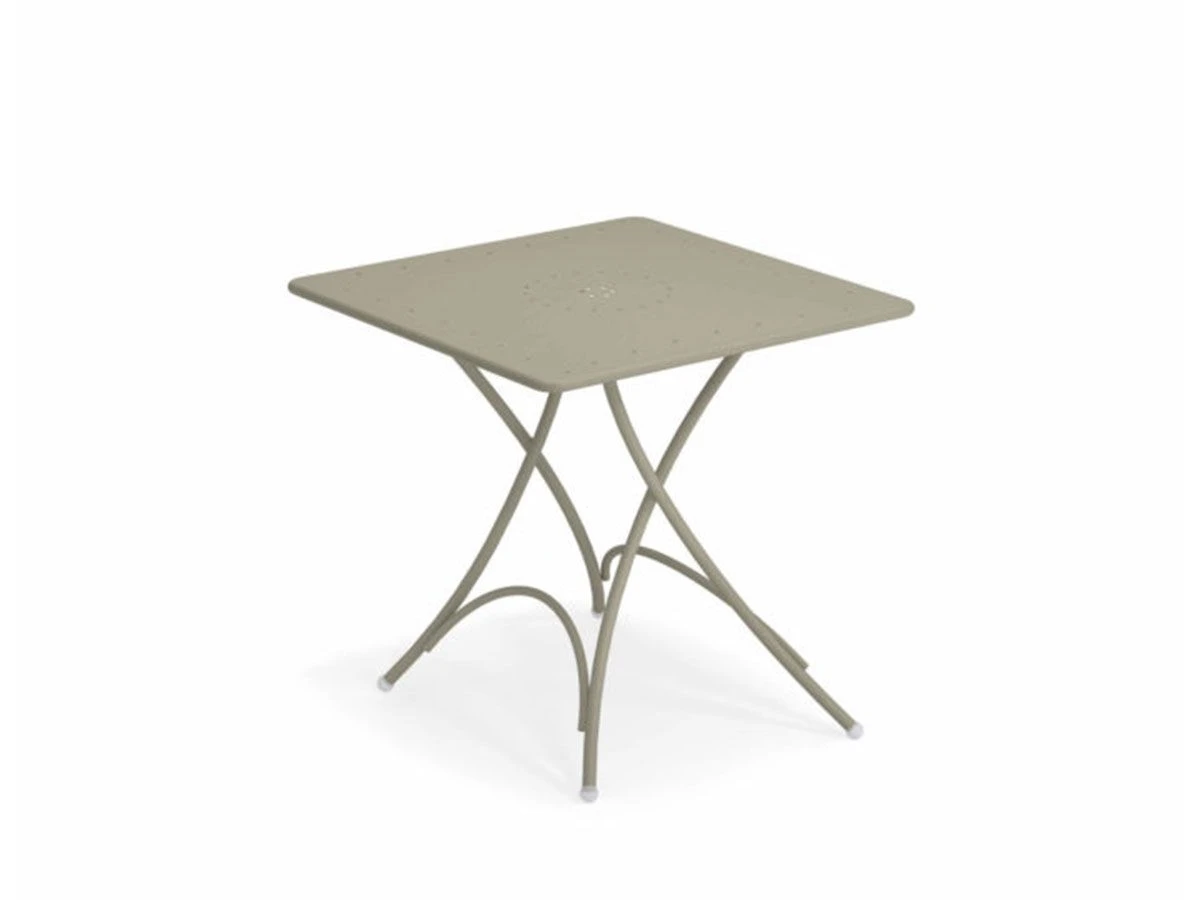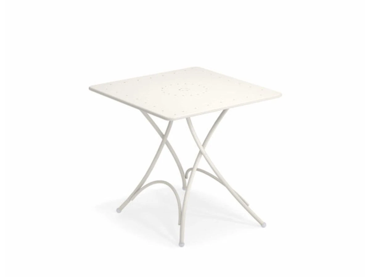Practical outdoor coffee table, versatile thanks to its romantic design, perfect for decorating small spaces such as a balcony but also suitable for local and restaurant. Pigalle embellishes gardens and living spaces with original but discreet features. Foldable and easy to store, treated appropriately to withstand the elements is powder coated in different colors. Coffee table characterized by a square top with rounded edges decorated with holes and curved legs, sober and elegant.