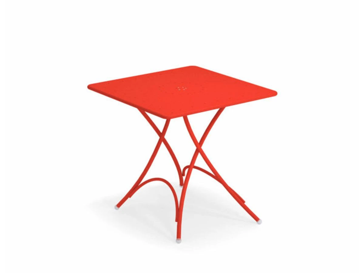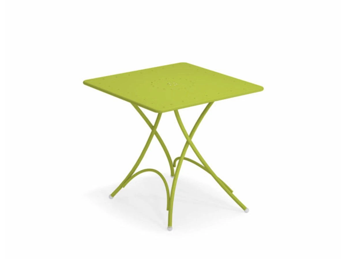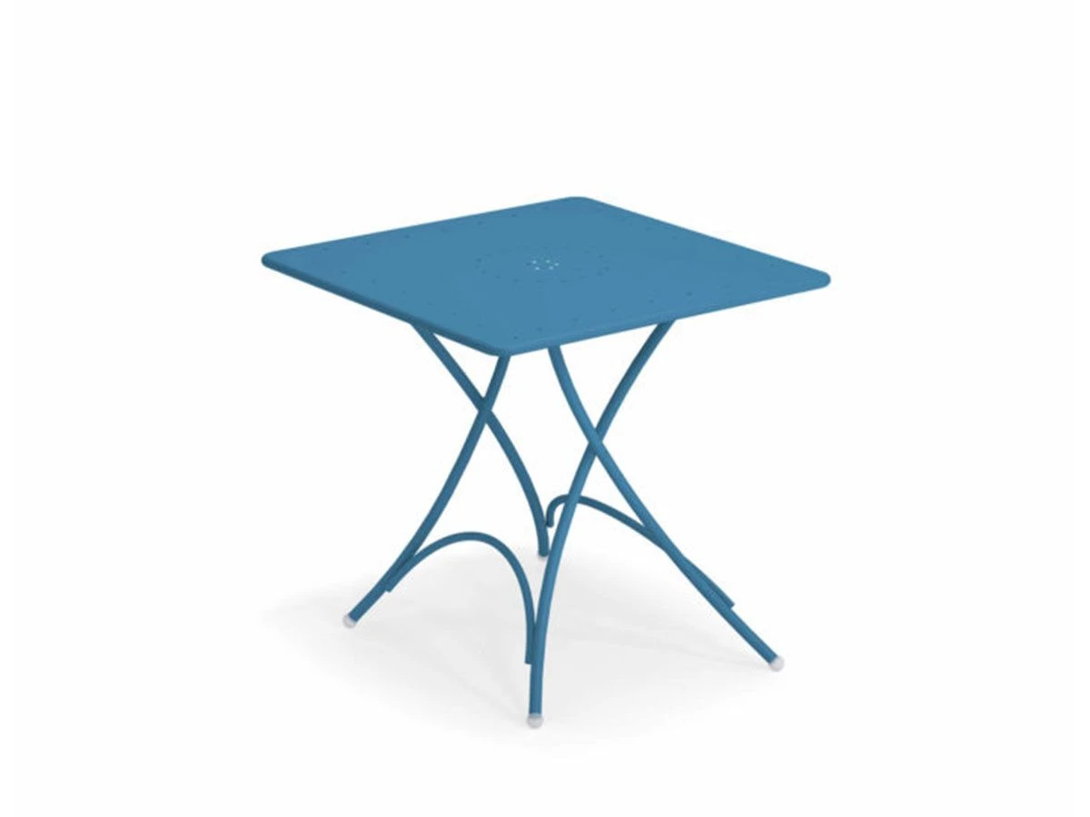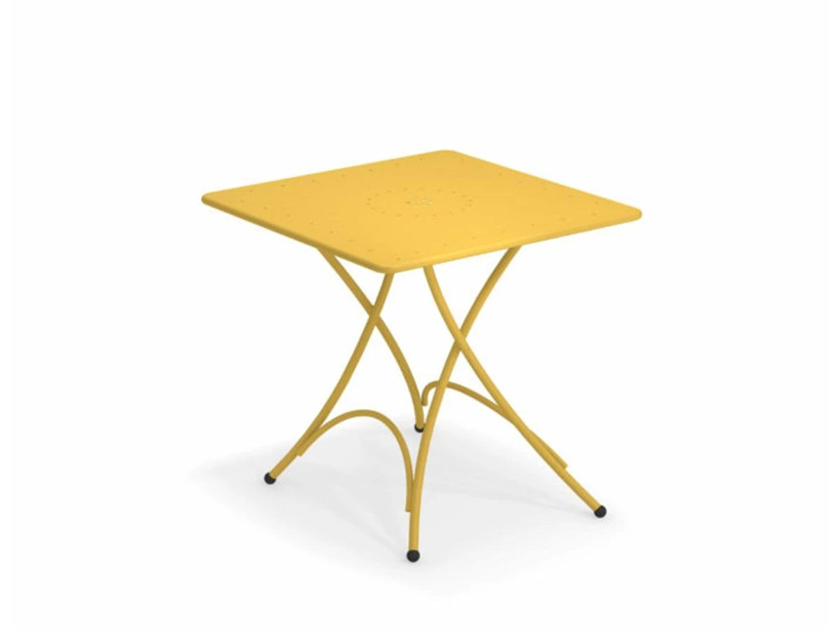 Practical outdoor coffee table, versatile thanks to its romantic design, perfect for decorating small spaces such as a balcony but also suitable for local and restaurant. Pigalle embellishes gardens and living spaces with original but discreet features. Foldable and easy to store, treated appropriately to withstand the elements is powder coated in different colors. Coffee table characterized by a square top with rounded edges decorated with holes and curved legs, sober and elegant.