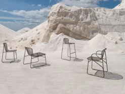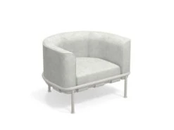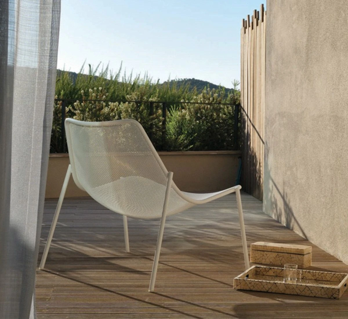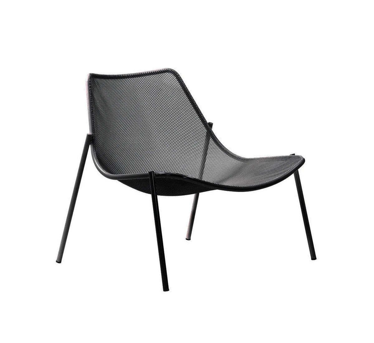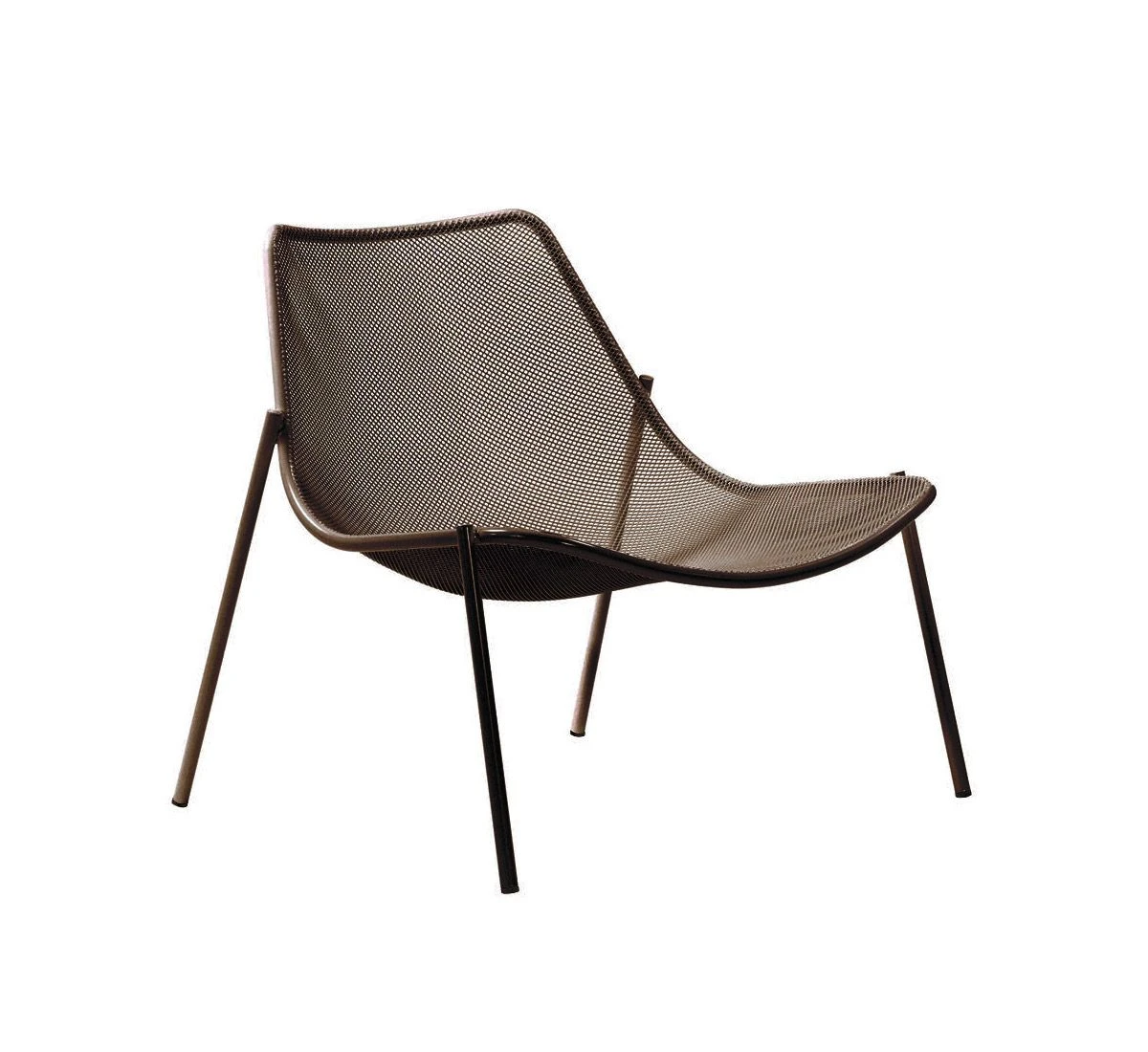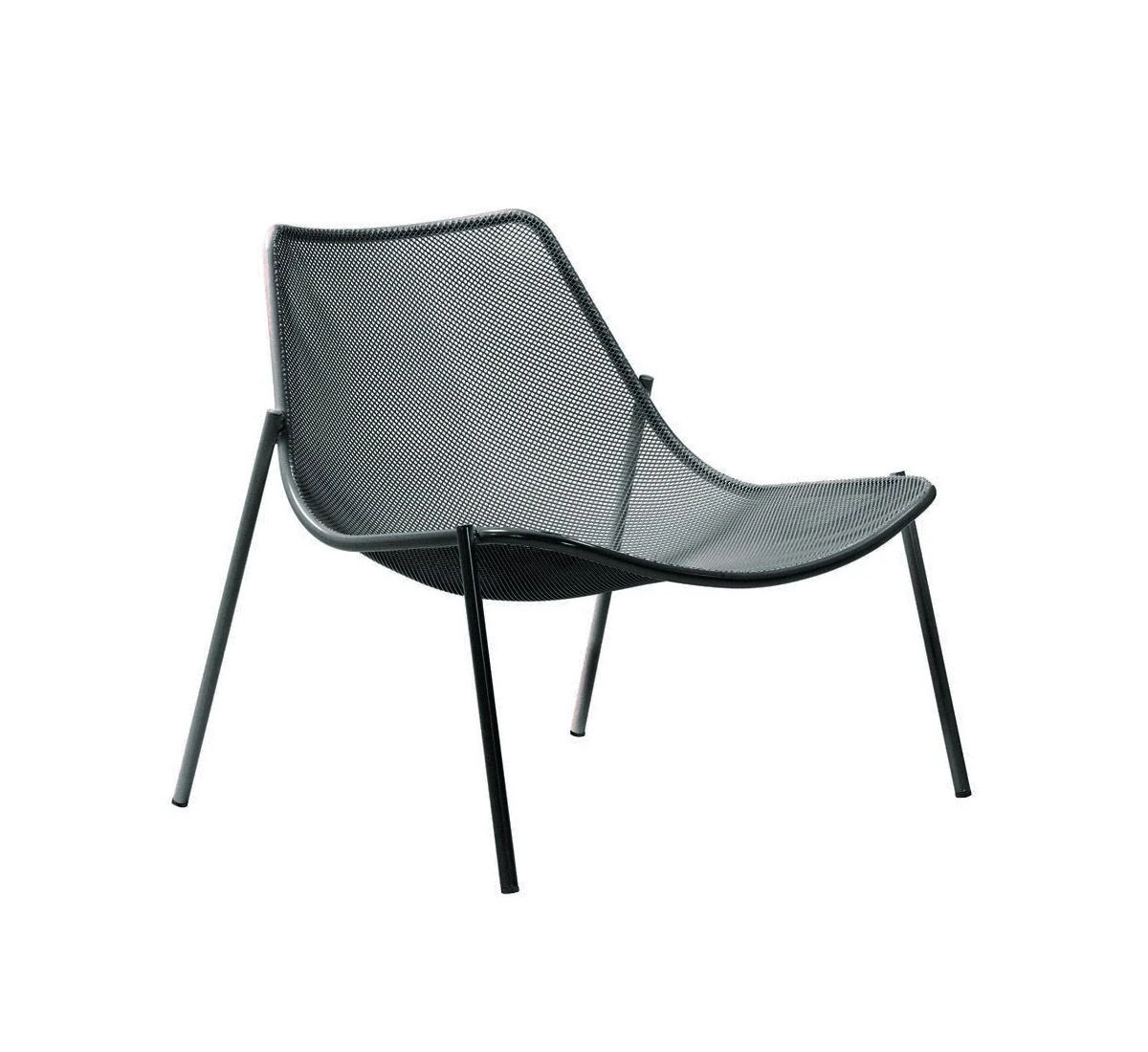 Round lounge chair for outdoor by Christophe Pillet for Emu, structure in tubular steel and shell made of stamped sheet metal.