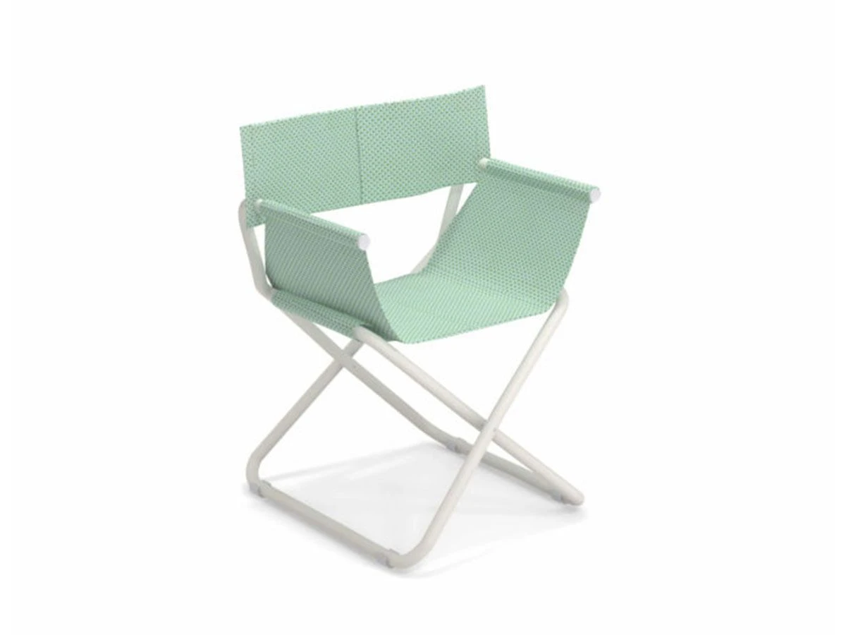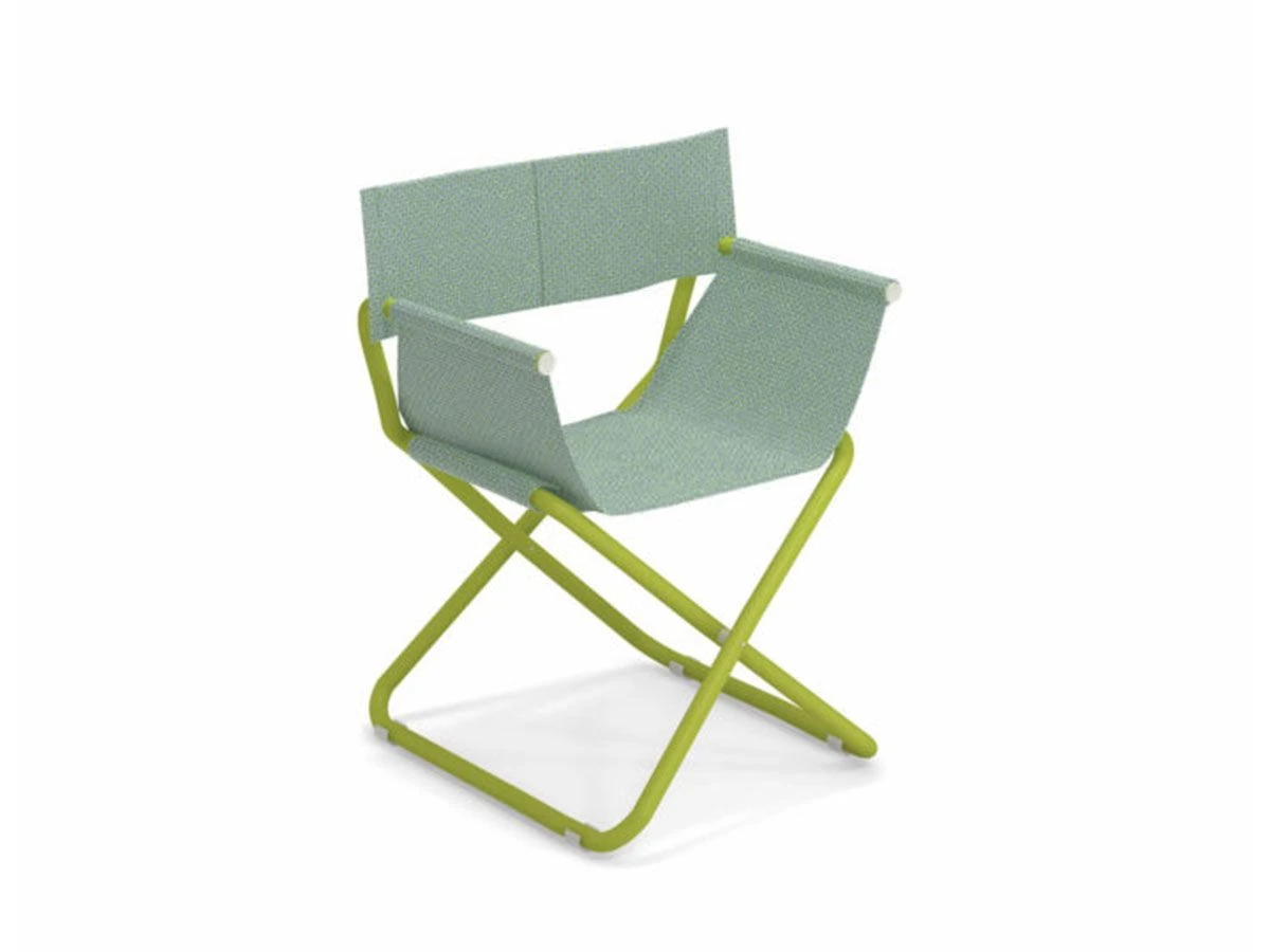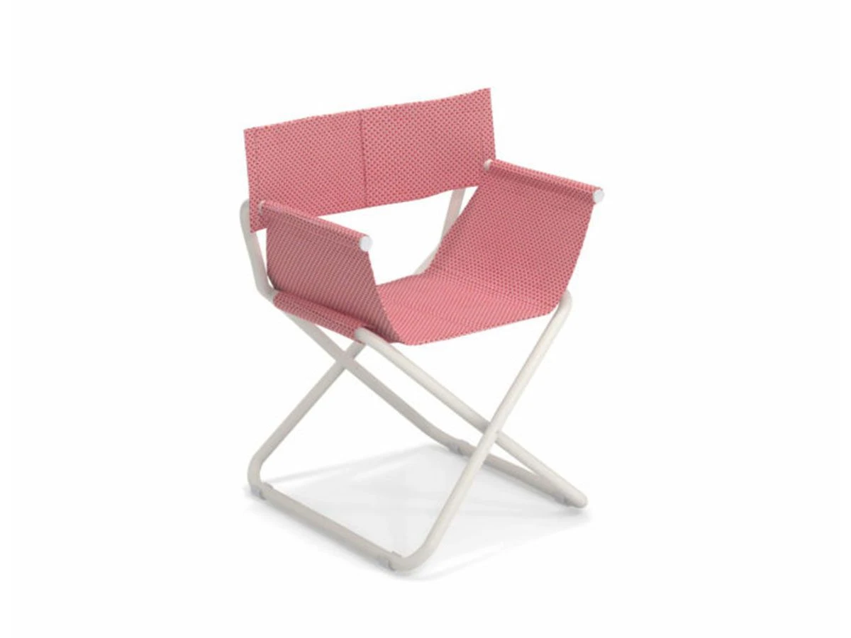 Snooze is a folding director chair by Chiaramonte/Marin for EMU. Painted steel structure and seat in EMU-Textilene fabric, removable.