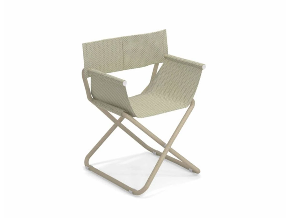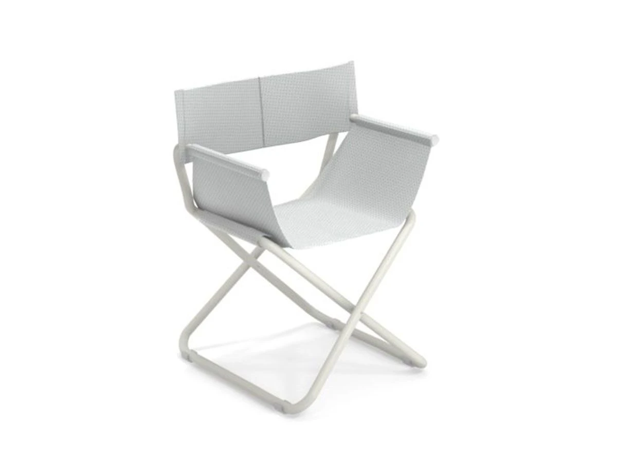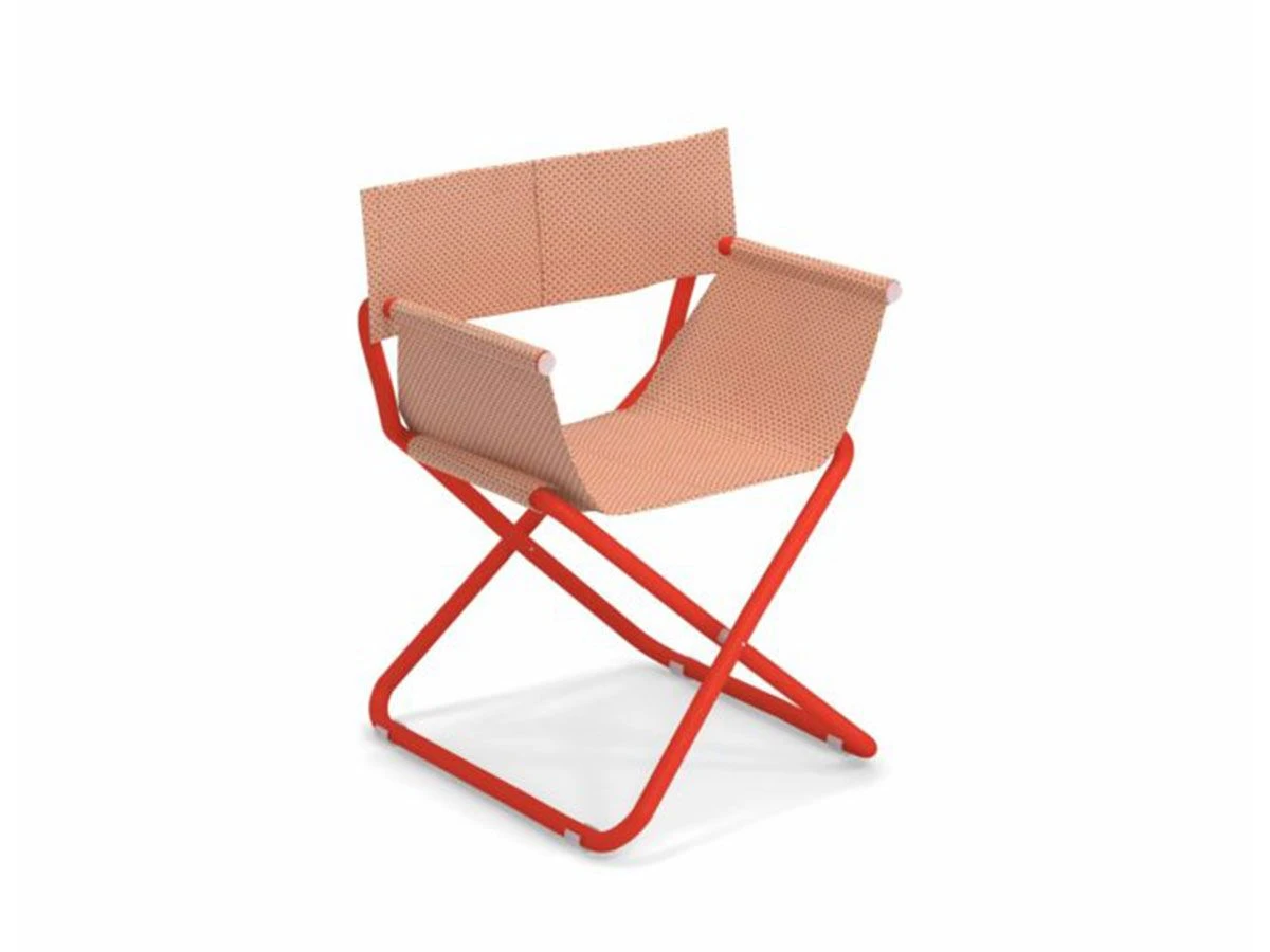 Snooze is a folding director chair by Chiaramonte/Marin for EMU. Painted steel structure and seat in EMU-Textilene fabric, removable.