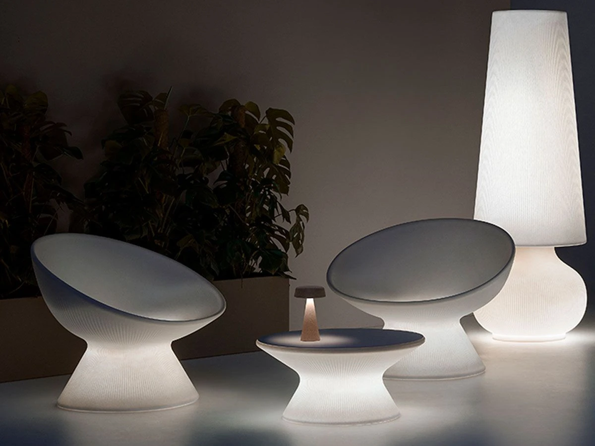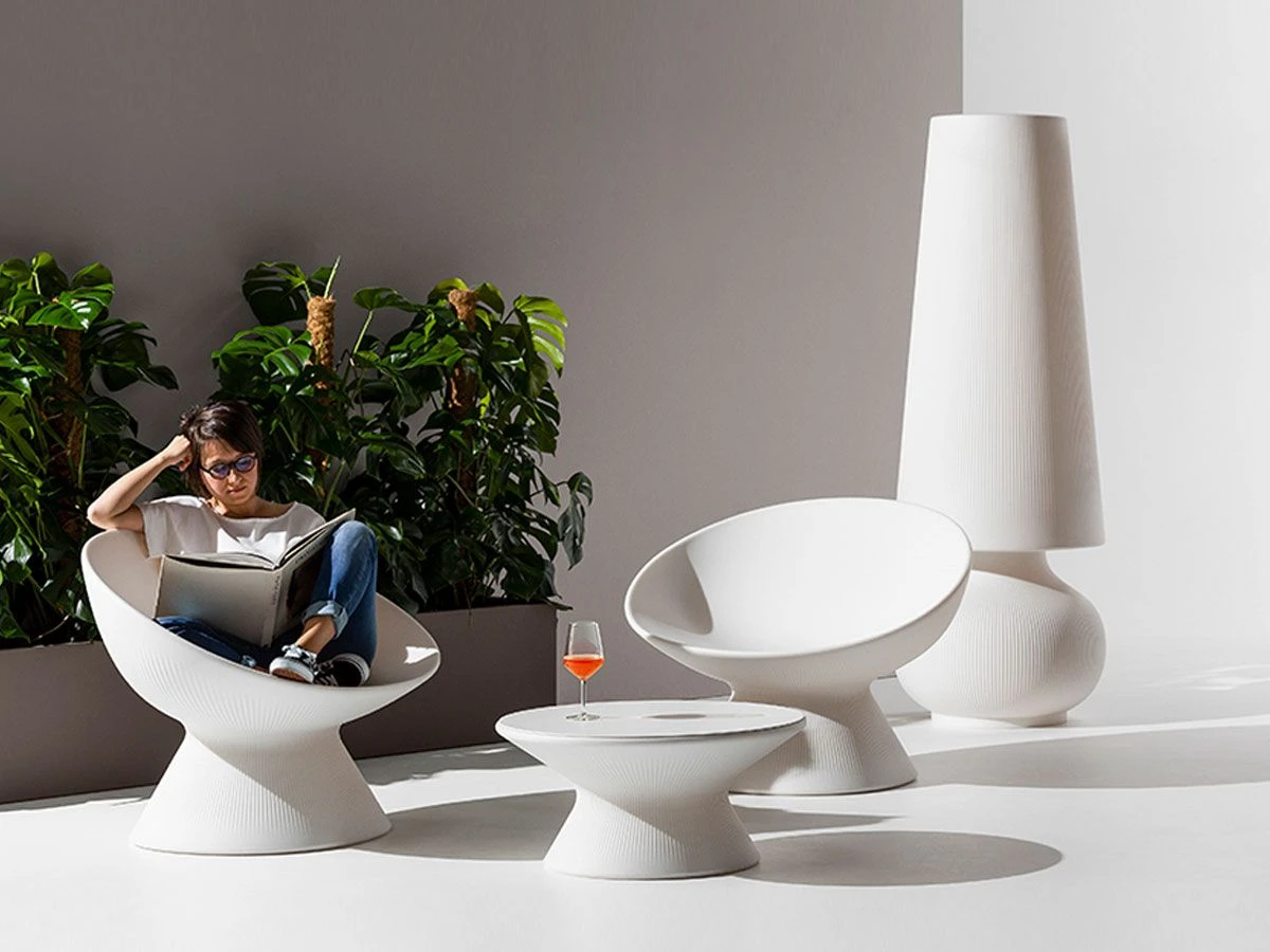 The Fade coffee table has an organic and elementary line and is therefore easily combined with various furnishing elements in outdoor spaces and beyond. A slight groove lines the funnel base. Fade coffee table is available with structure entirely in polyethylene, in white polyethylene U1 to which the lighting kit can be added, in polyethylene with HPL top or in polyethylene U1 with HPL top to which the lighting kit can be added. The purchase of the ground fixing kit is recommended. Do not hesitate to contact our customer service for variants with RGB light or remote controlled lighting.