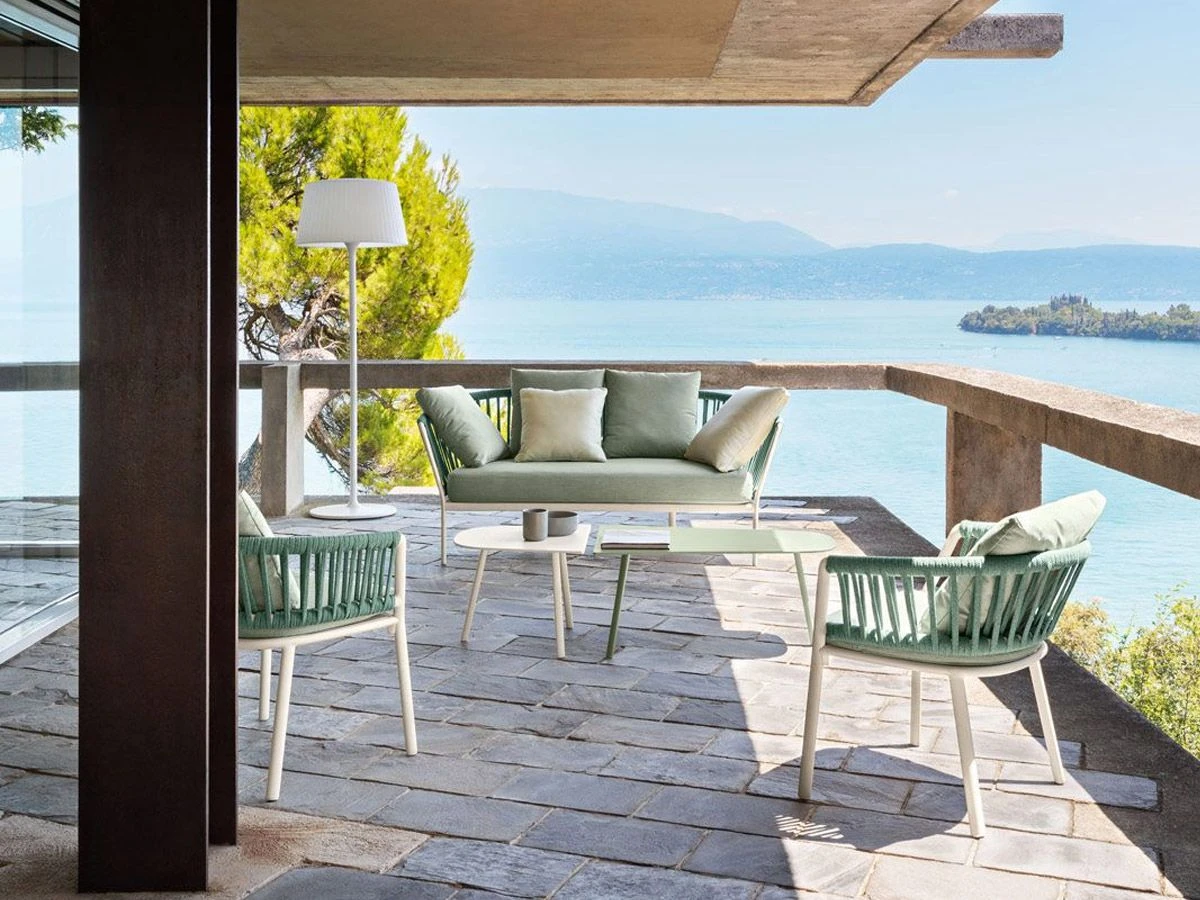 Ria is a fresh collection of outdoor furniture designed by Alberto Lievore for Fast. The series includes an armchair in the aluminum version, semi-intertwining and intertwining, 2/3 seater sofas, armchair, lounge and daybed in the intertwining versions.
