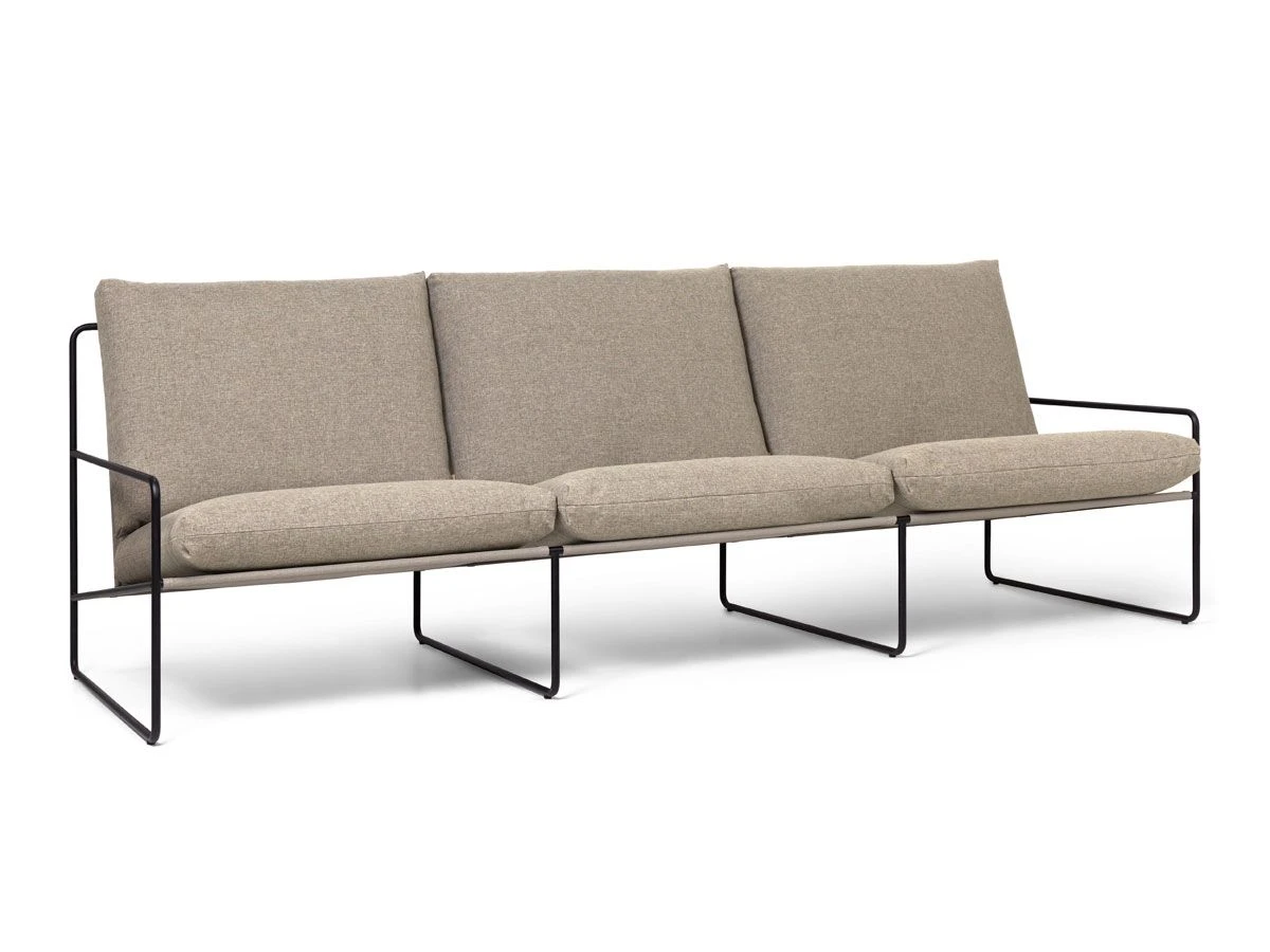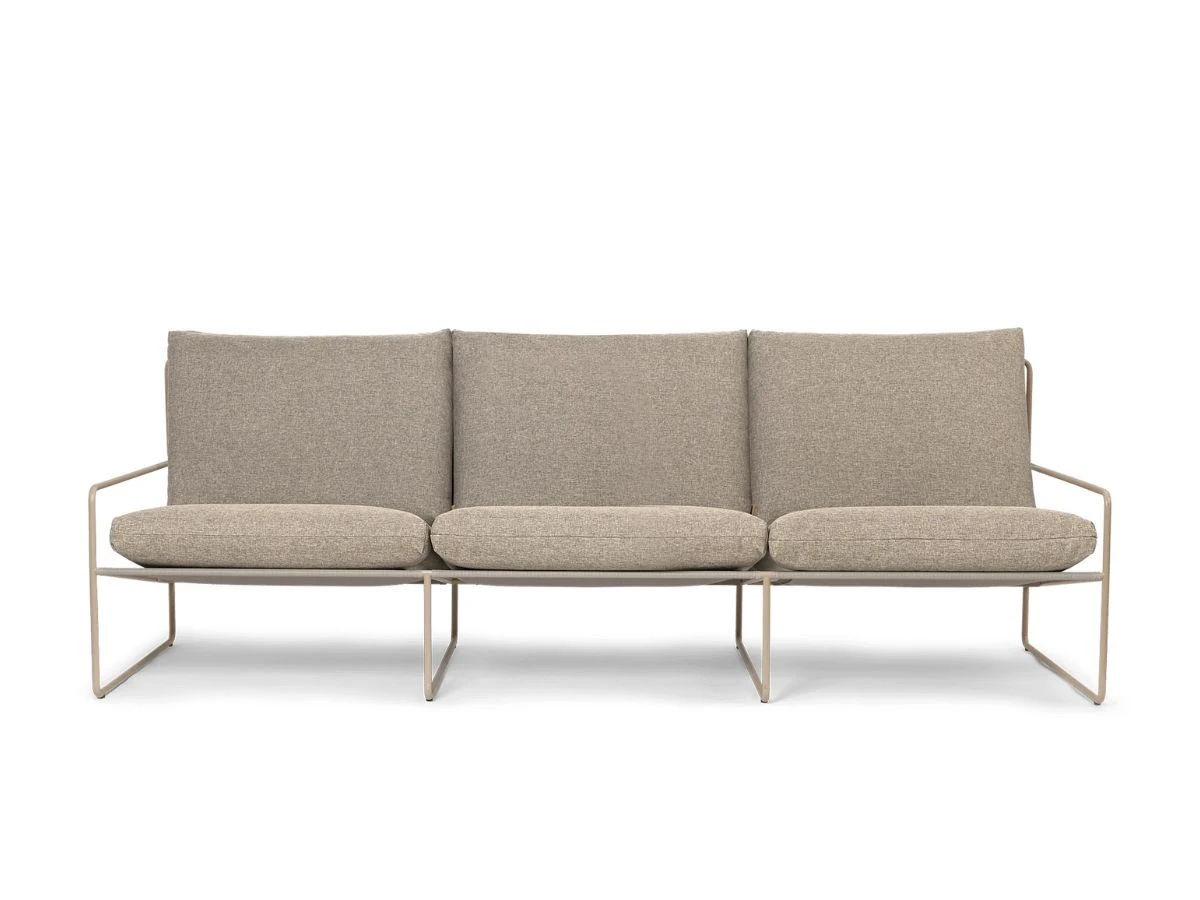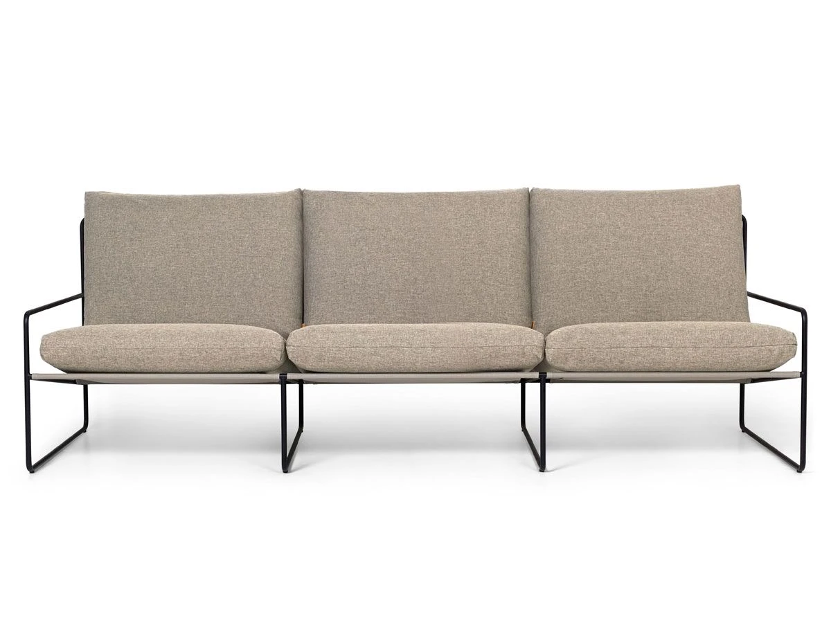 Desert is a refined collection of outdoor seating designed and produced by Ferm Living. The series includes different models of armchair, and 2 and 3 seater sofa. Made of light powder-coated metal and removable upholstered seat. Handmade fabric.