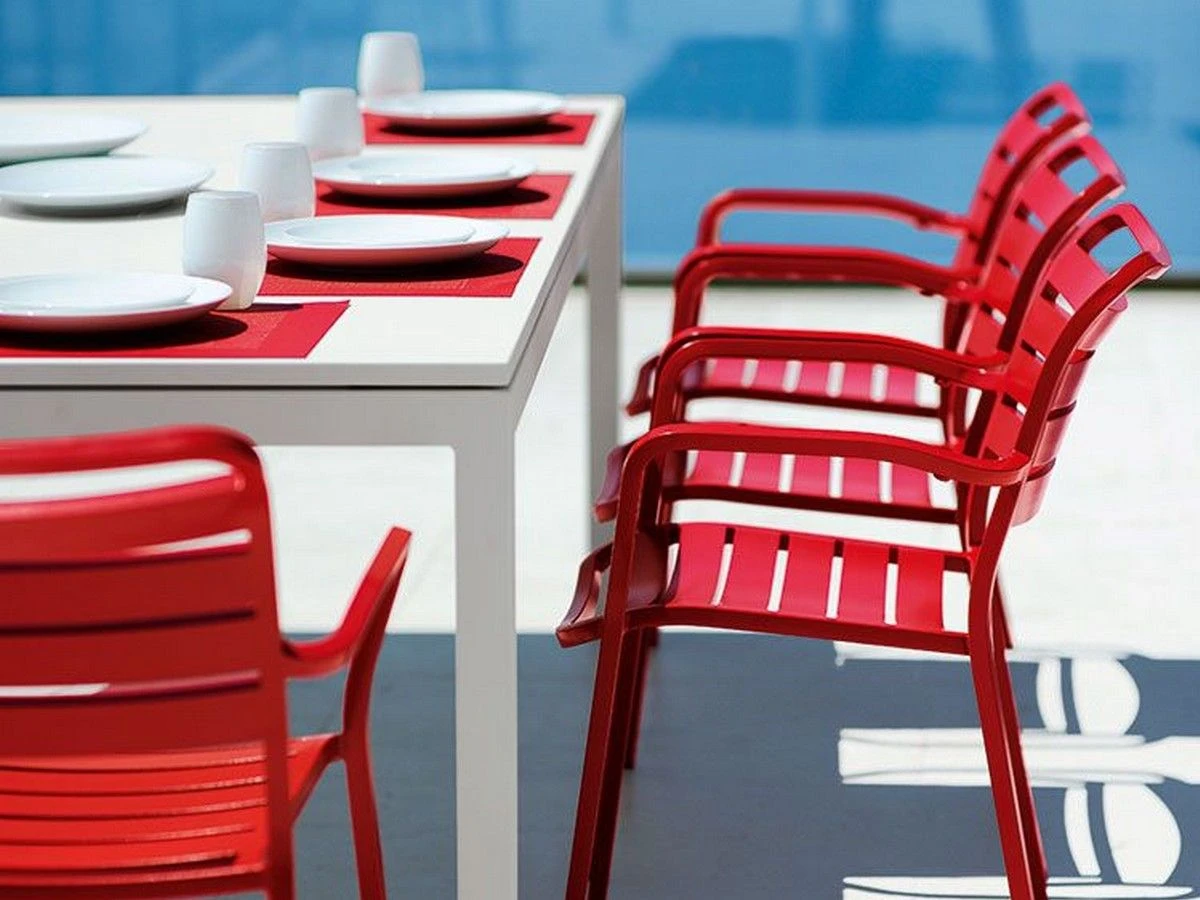 Flat is a table for outdoor by the elegant and modern design. Made entirely in metal treated with special processes to ensure long life and withstand the elements. Flat will adapt and beautify your outdoor environments with its clean lines and decided, also its stainless steel mechanism will allow you to extend this table up to a length of 3.6 meters.