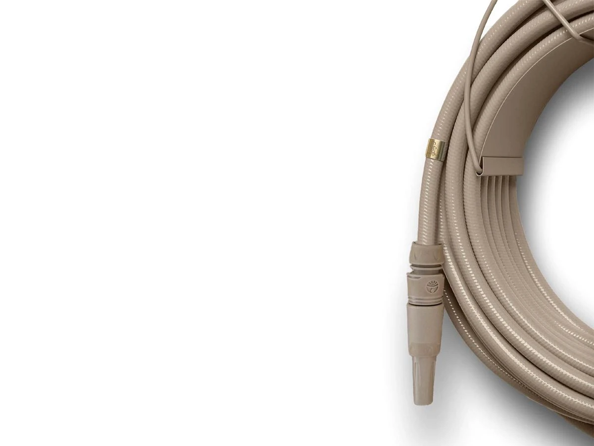 Flexible Garden Hose for watering in PVC free of lead, cadmium and phtalates. 20 m length. Diameter 1/2″. The mesh structure covering its entire length increases its robustness, its crush resistance and prevents knotting. Dirt-repellent and UV-resistant, the hose does not fade when exposed to sunlight for prolonged time. 5-year guarantee. Made in Denmark. Fittings not included. It is possible to purchase them separately in the same finish as the hose you choose.