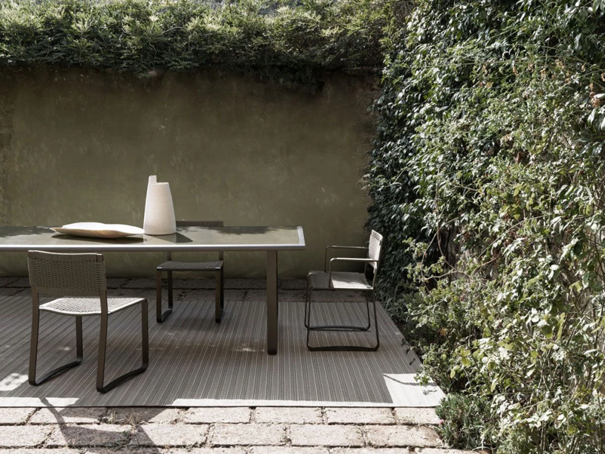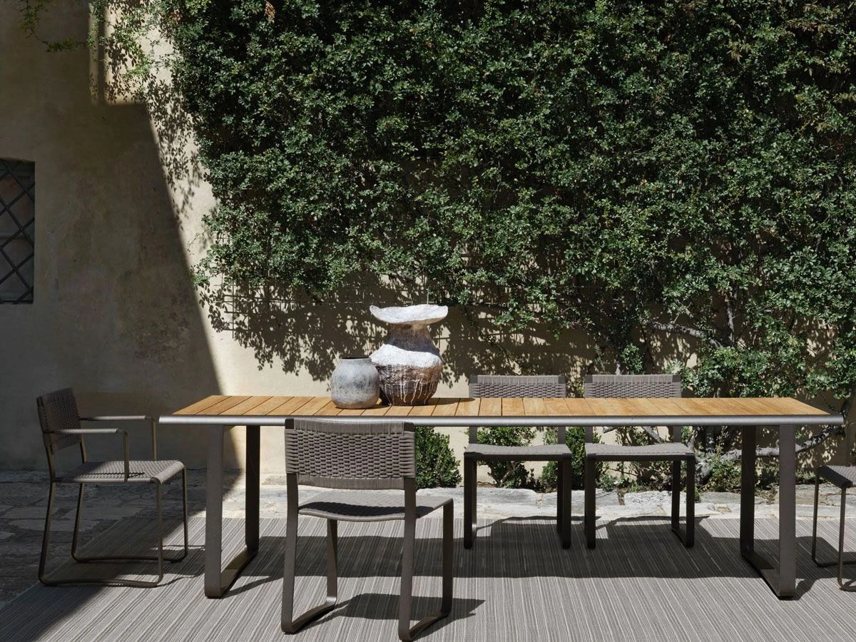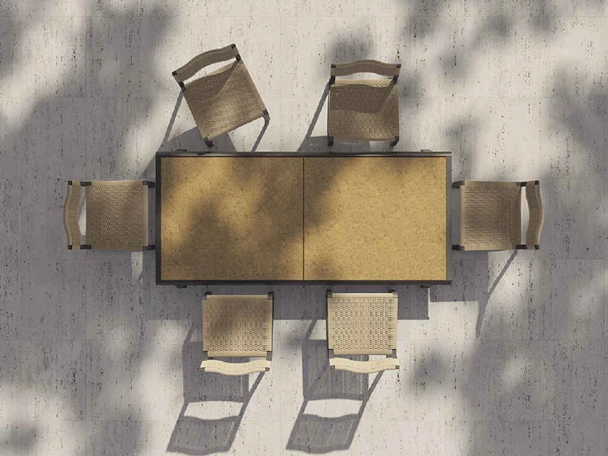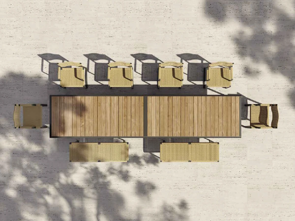 Golden Gate is available in two sizes – from six to eight seats – each of which can have a solid teak slatted top or a lava stone top in anthracite, olive green, and desert yellow, with a slightly rough surface. Golden Gate is perfect for furnishing the space dedicated to dinners with friends and moments spent in the company in a garden, under a patio or on a large urban terrace.