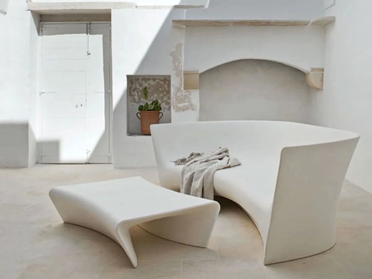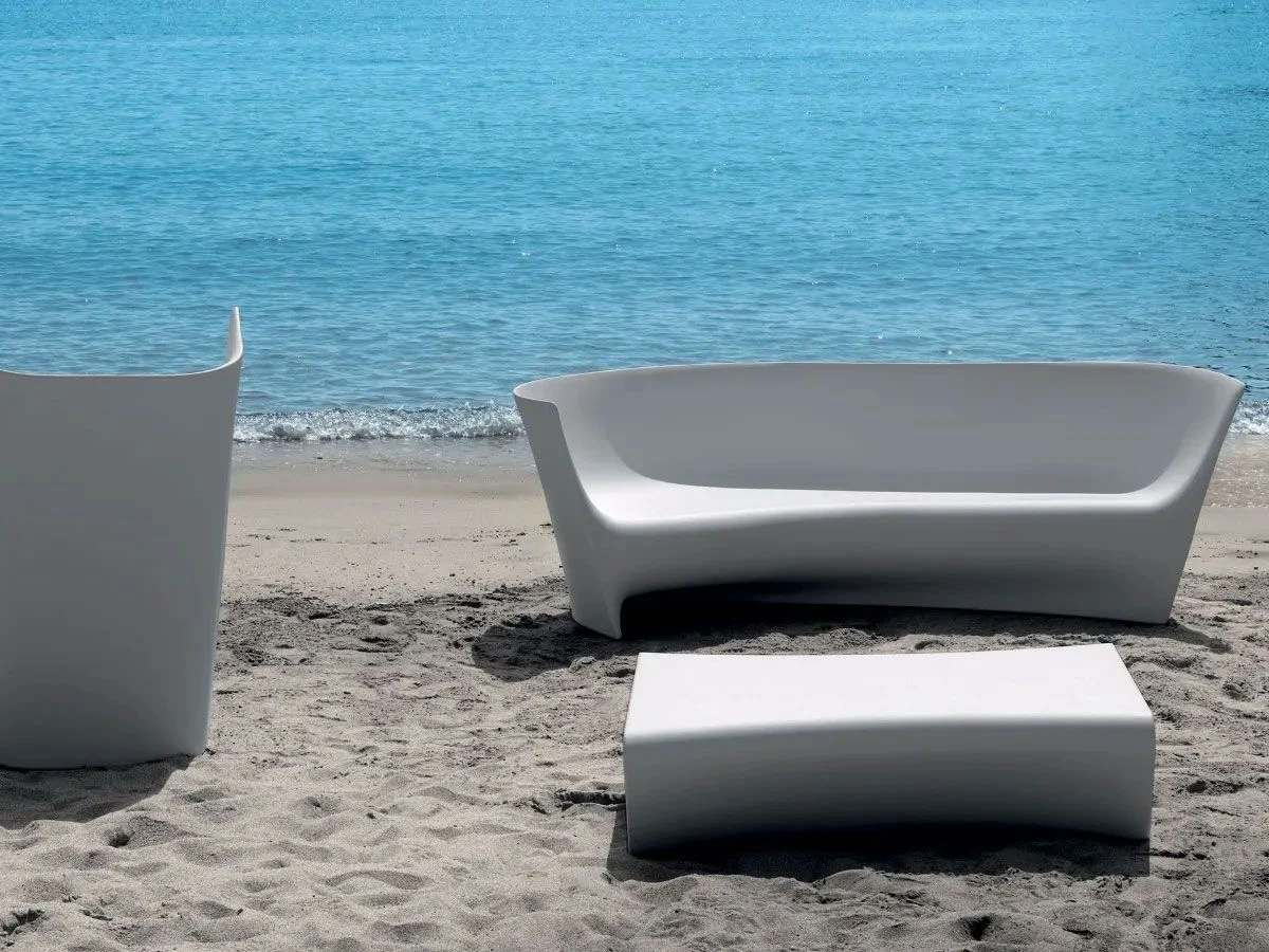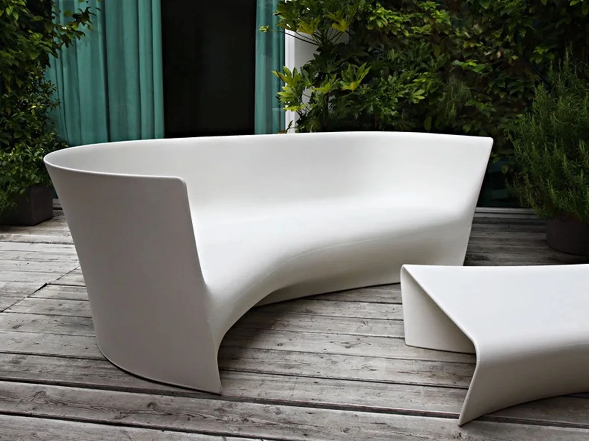 Grand Pliè is an outdoor sofa designed by Ludovica and Roberto Palomba for Driade. Made of polyethylene monobloc available in two colours white or light grey.