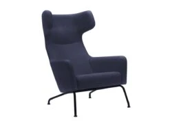 This iconic armchair made for you to relax is a classic armchair who had a makeover more dinamic and modern, without compromising comfort. The cover is removable and need to be dry cleaned. In this version, fabric Kvadrat hallingdal 65 navy blue and steel legs lacquered in black.