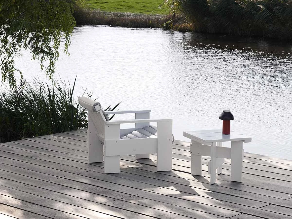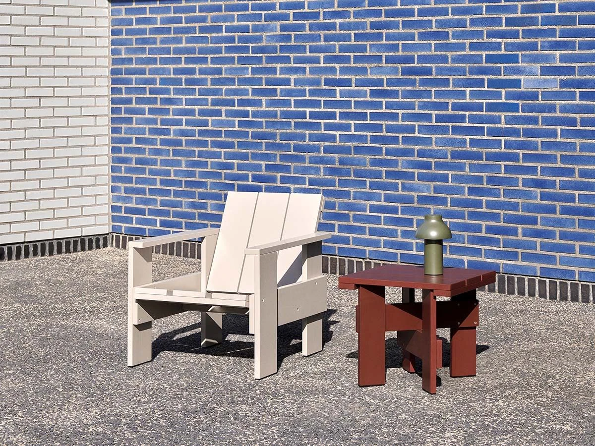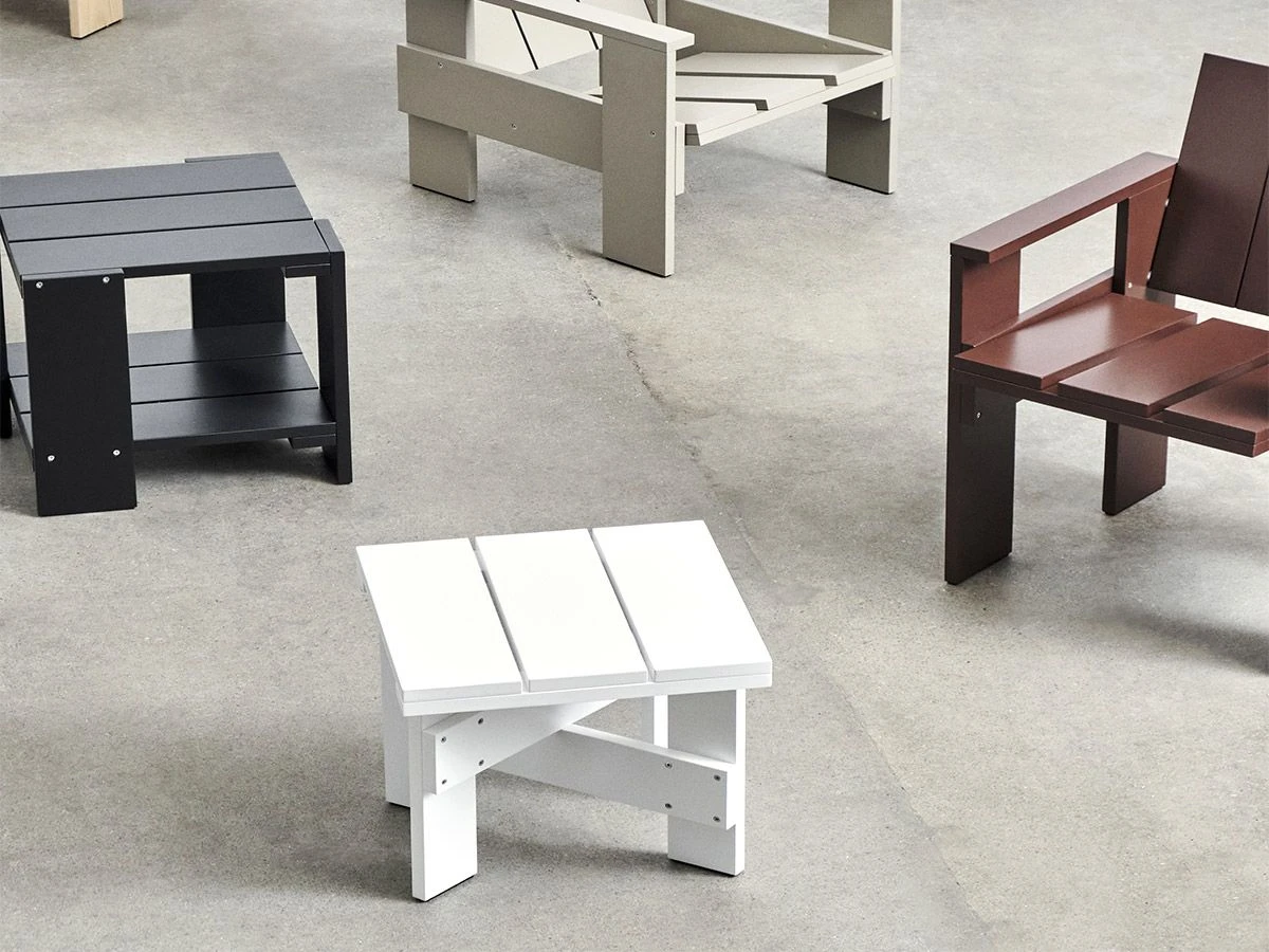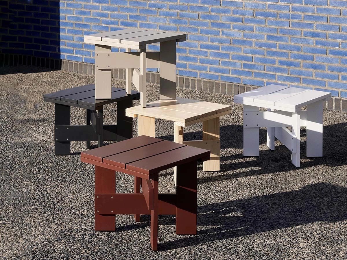 Crate Low Table is an outdoor furniture piece from the namesake collection, manufactured by Hay, inspired by the project of 1934 by the Dutch architect and designer Gerrit Rietveld.