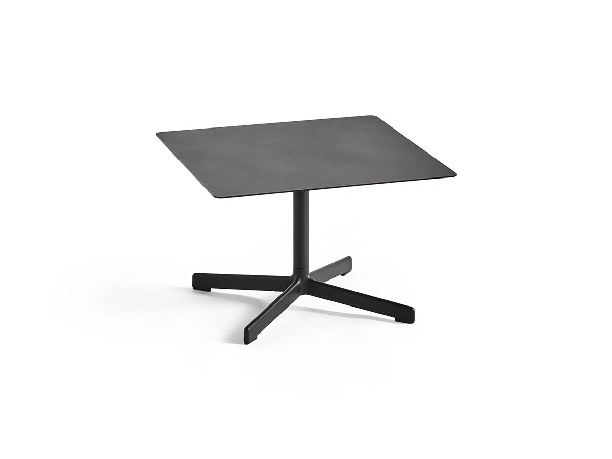 Tavolino con piano quadrato realizzato in acciaio elettrozincato verniciato a polvere per esterni. Base in alluminio fuso con verniciatura a polvere per esterni. Disponibile in due colori. Richiede assemblaggio.