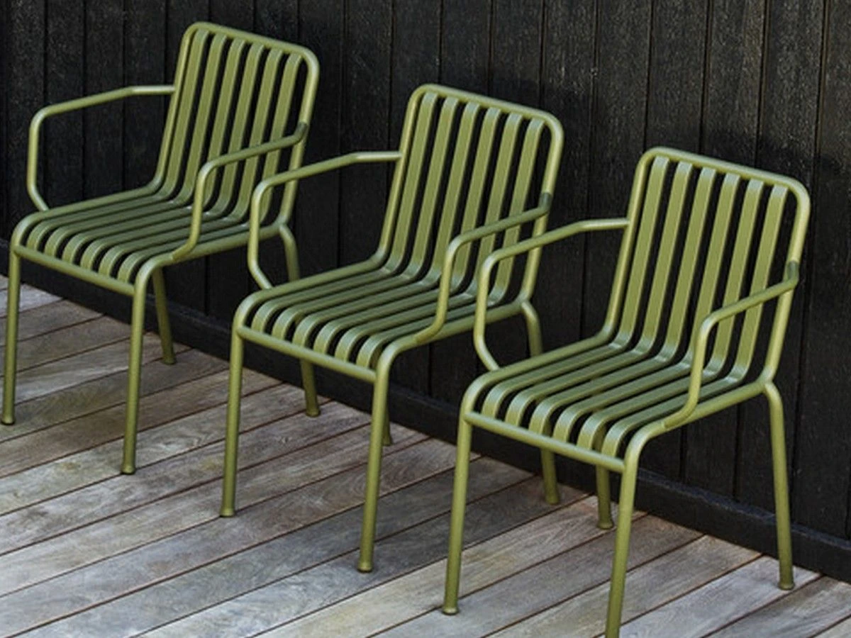 Palissade Armchair is part of lucky Palissade family by Hay brand. Palissade is a collection of outdoor furniture designed by Ronan and Erwan Bouroullec that conunt 13 elements in the collection are made from powder-coated steel and will be available in three colours Olive, Sky Grey and Anthracite or in exclusive Hot galvanized steel finish.