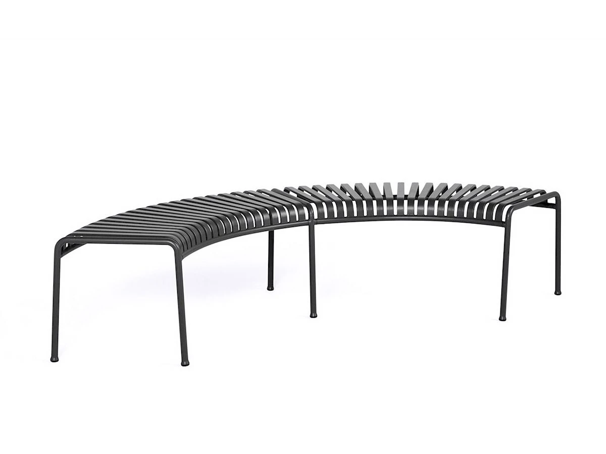 The Palissade Park Bench incl. Middle Leg is the kit to decorate large green spaces, public or private, with solid seating with curved and sinuous lines. This article starts with elements that open outwards (two Out elements), it is up to you to choose whether to add Palissade Park Dining Bench Add On in the Out version to continue the curve creating an arch or In to turn it inwards and draw a wave. All Palissade furniture is made from weatherproof materials, this is steel treated with a primer to protect it from the elements. Each leg ends in a plastic foot that isolates it from the ground and ensures stability.