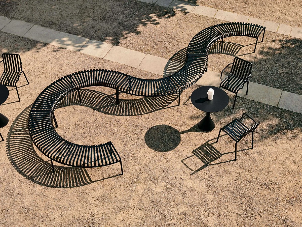 Palissade Park Bench incl. Middle Leg is produced by Hay. Designers Ronan and Erwan Bouroullec have thought about involving you, leaving you part of the creative process for furnishing your garden and terrace.