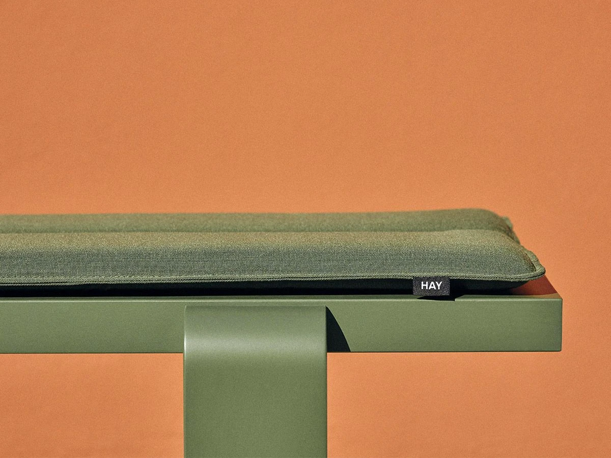 WeekDay Seat Cushion for Bench L. 111 is the accessory that lets you fully enjoy the Weekday collection of benches by Hay, adding comfort and allowing for a more cheerful and relaxing use.