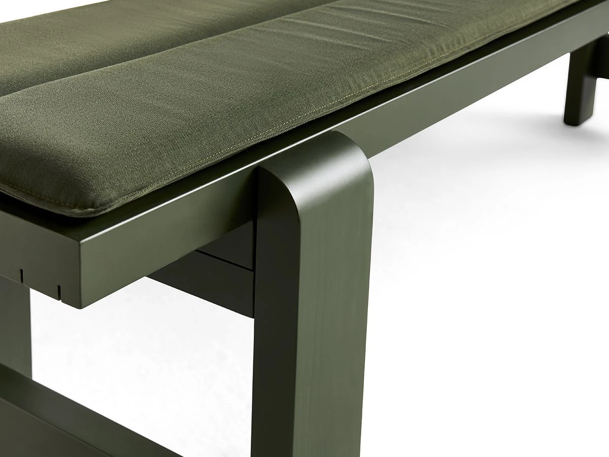 WeekDay seat cushion for bench L. 140 cm. Available in 3 colours. Upholstery in fabric covered with Teflon® for a water-repellent finish. 100% Olefin.