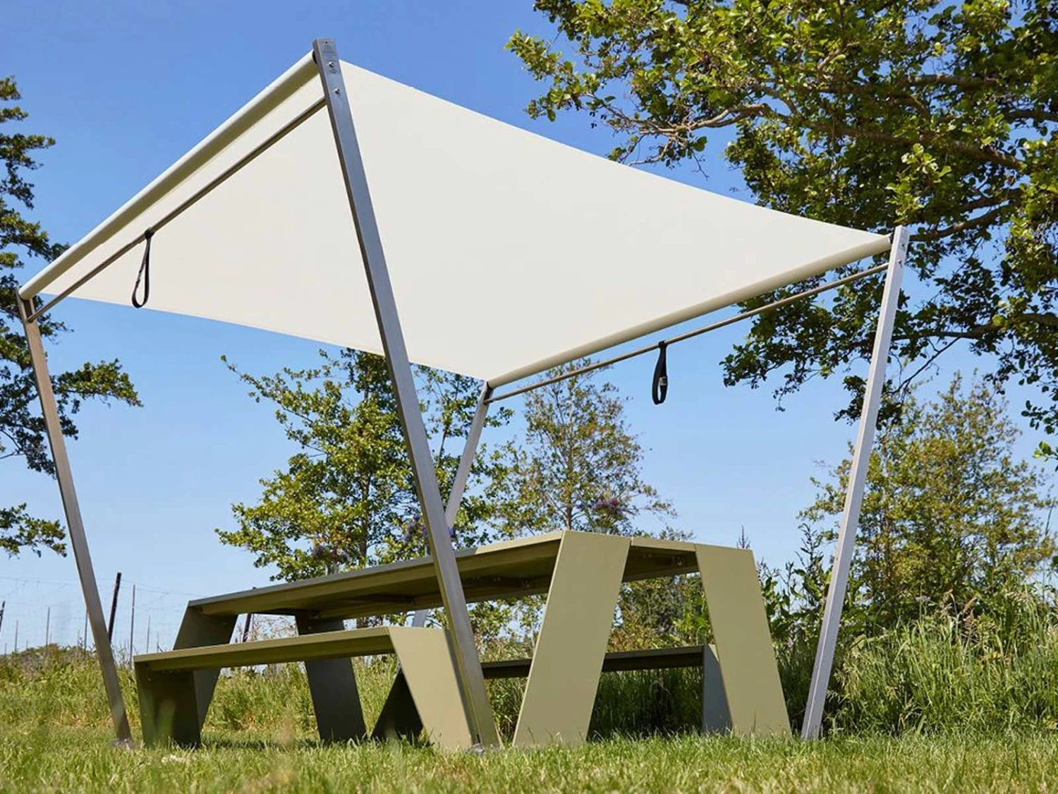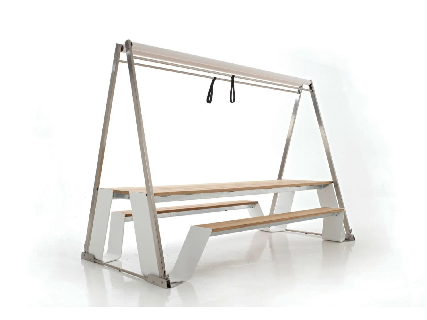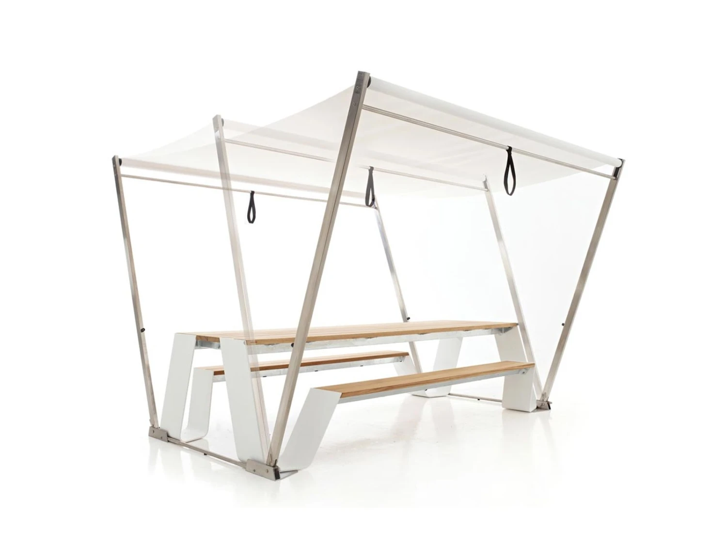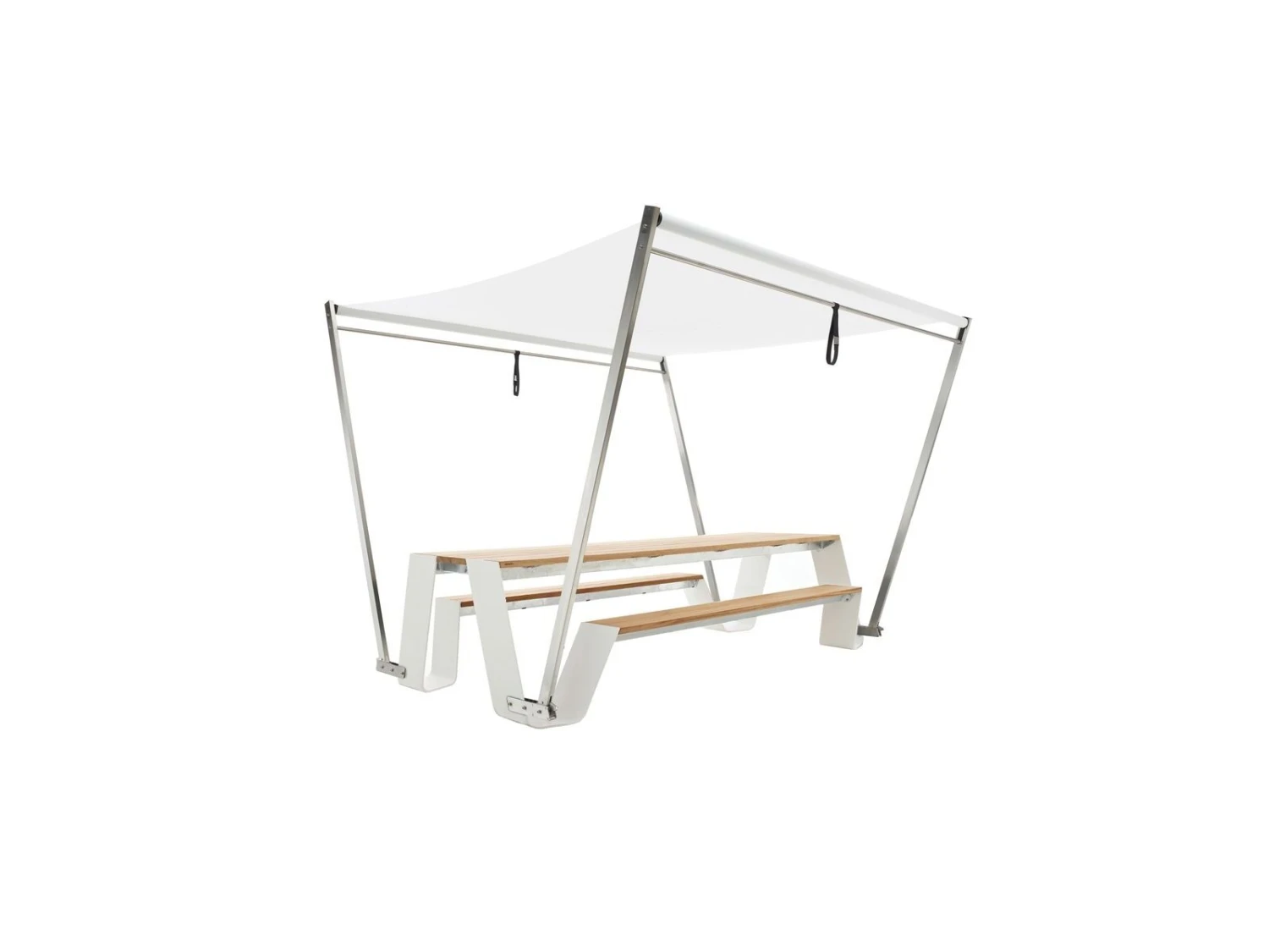 This awning, thanks to an internal spring mechanism, can be opened and closed without effort, and does not take up additional space compared to the table. It is able to create sufficient shadow and can be moved to follow the movement of the sun, always guaranteeing a continuous shadow. Made of extremely resistant materials, this awning will be the ideal companion for days outdoors.