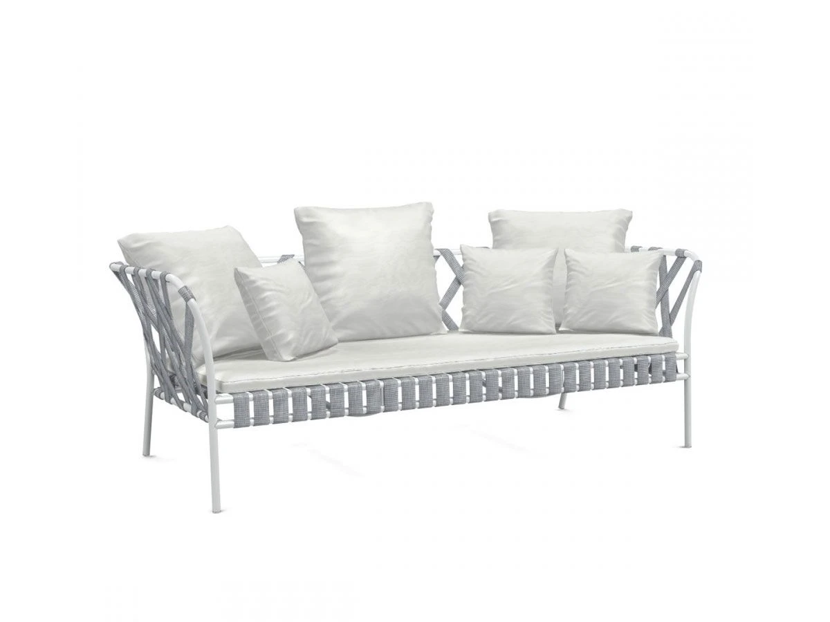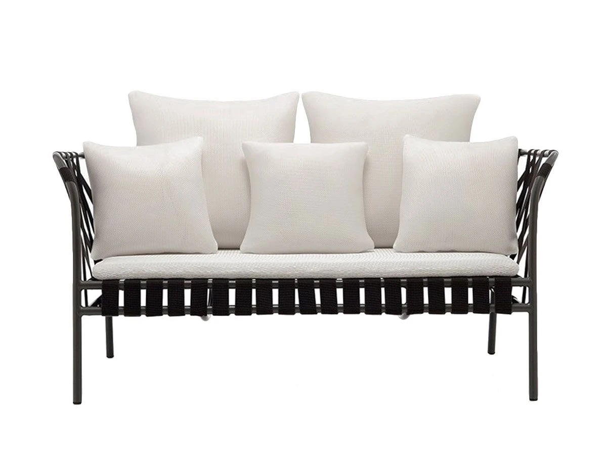 InOut Sofa 852-853 is a collection of outdoor sofas designed by Paola Navone for Gervasoni, with aluminium tubular frame and woven elastic belts.