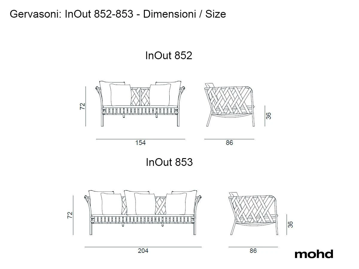 InOut 852-853 are sofas that are part of the popular outdoor collection, InOut; which includes chairs, armchairs, sofas, tables, coffee tables and sunbeds; everything you need to furnish with taste and style your outdoor, regardless of whether it be a garden, terrace or poolside. The InOut sofas include the seat cushion in Breathair, H 3 cm, and the cushions for the backrest.