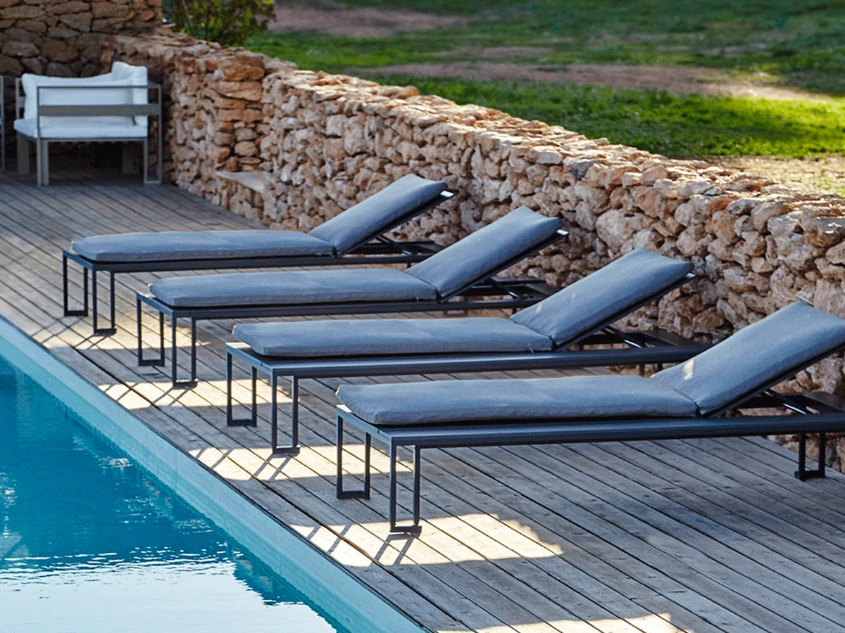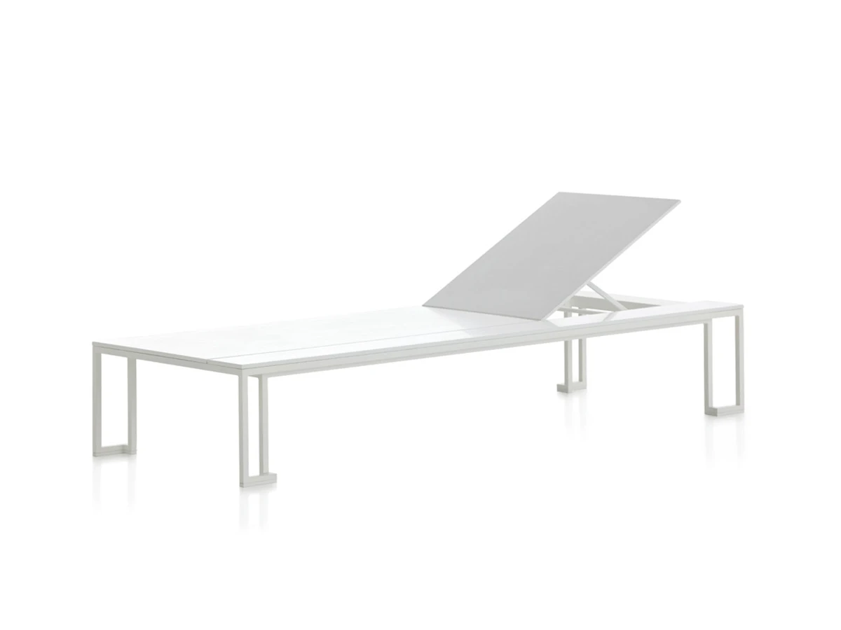 Jian is a chaiselongue designed by Blacks & Hu for GandiaBlasco, the structure is made of aluminum and the mattress is polyurethane foam rubber.