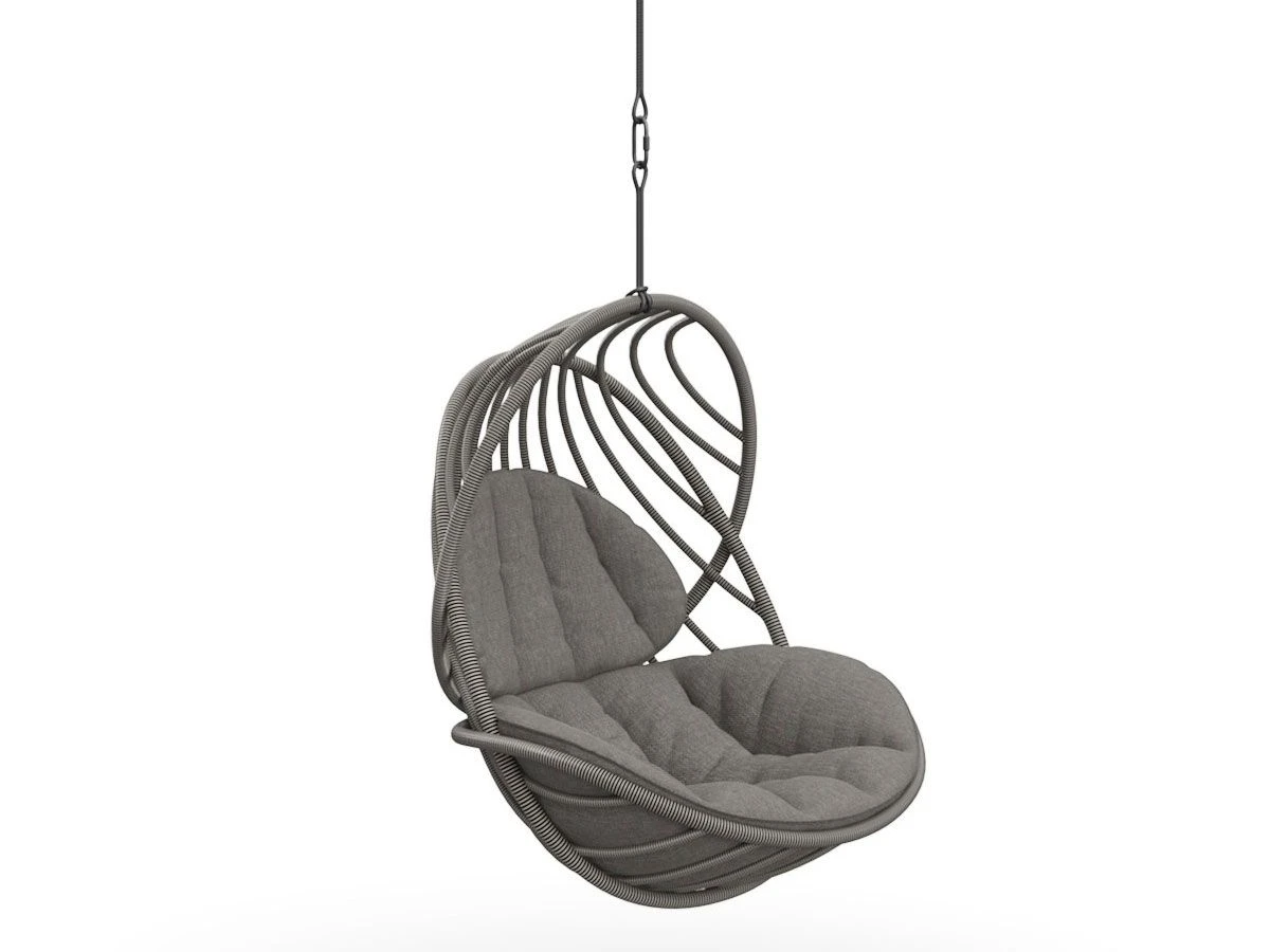 Kida is a hanging lounge chair by Stephen Burks for Dedon. Aluminum frame. A hanging lounge chair playful, cozy, and with organic shape.