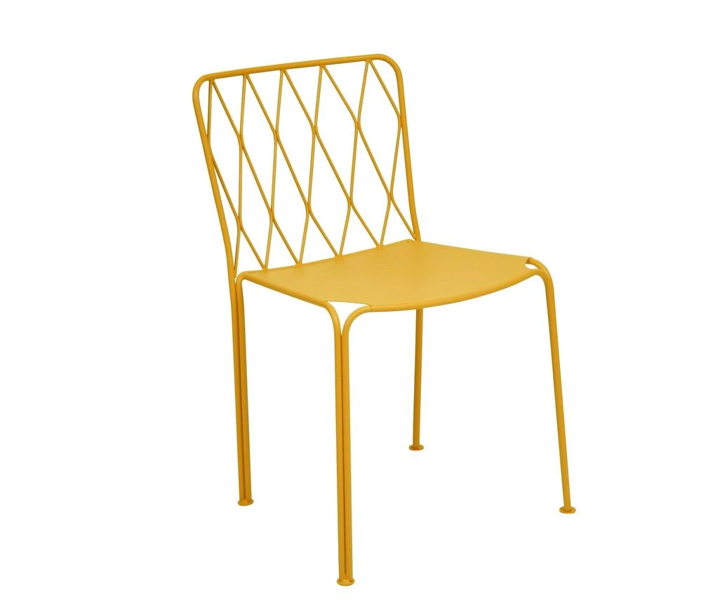 Outdoor Kintbury is a chair designed by Terence Conran for Fermob. Base and back in steel wire and base in cut sheet steel and numerous bright colors for summer.