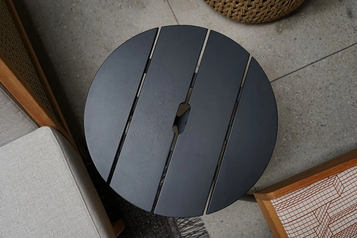 The coffee table comes in two sizes and shapes, both with rectangular and round top. Like the other furniture, it is possible to choose between teak and black mahogany. Perfect to complete the series and to put near the sofas or the armchairs, these tables could be easily arranged in every environment.