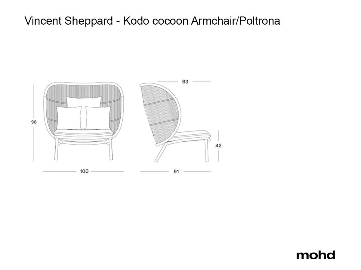 The Kodo cocoon outdoor armchair is designed by Studio Segers for the Vincent Sheppard brand. Made with acrylic rope backrest, powder-coated aluminum frame, while the seat cushion is produced with removable fabric cover in category C Almond. This comfortable outdoor armchair is part of the Kodo outdoor collection. A tactile and comfortable armchair with rounded back and elegant curves that enrich any outdoor space with style. Together with the dining table, the dining chair, the armchair and the Kodo sofa, it gives a unique and exclusive vision. Try it and you won’t regret it! Optional protective cover not included in the price.