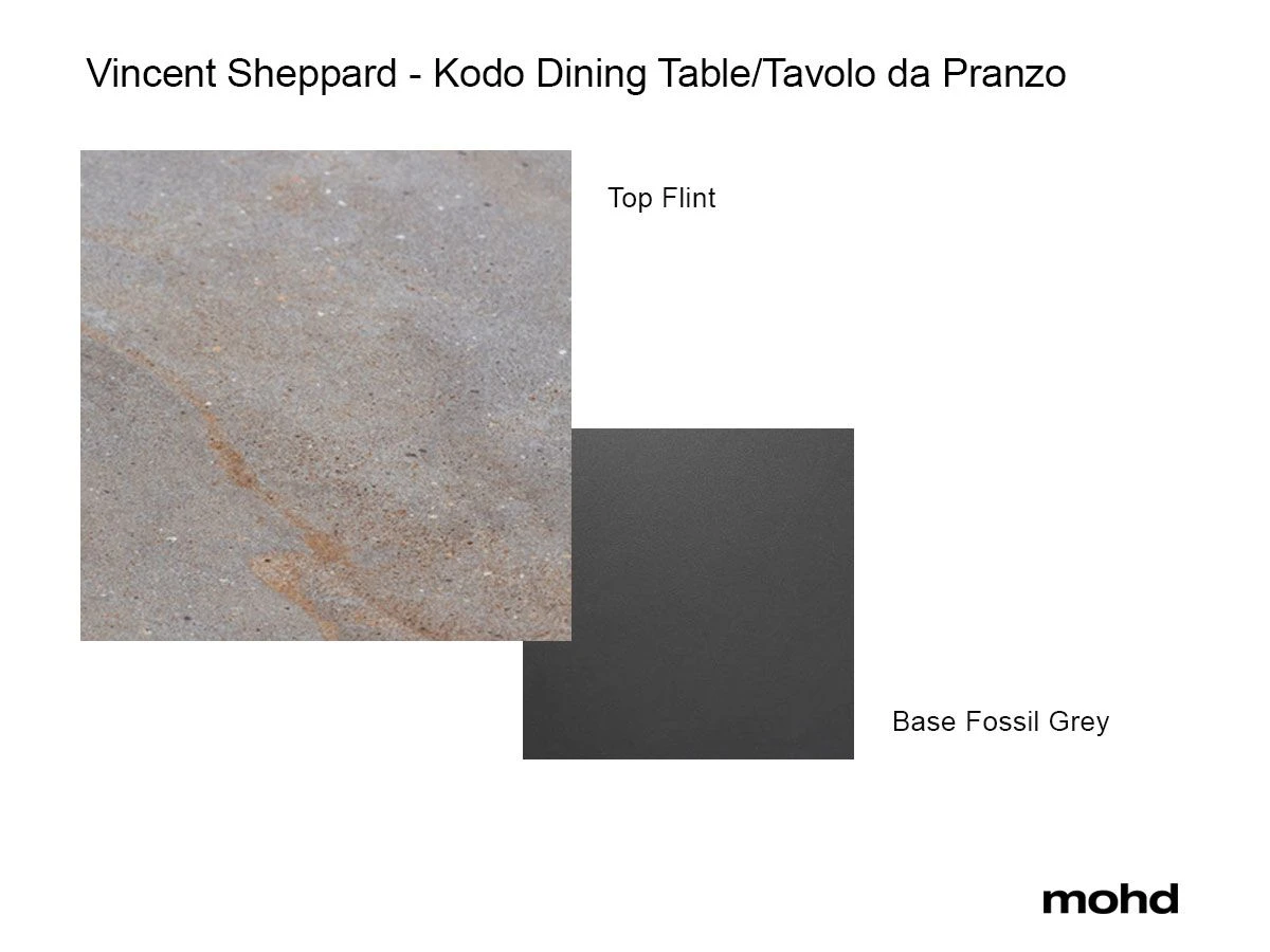 Kodo features an elegant ceramic top that offers a natural look and feel to the slim aluminum legs. Perfect for any outdoor space, this table is produced in two sizes to meet your every need. The top finish is in Flint ceramic which shows a nice contrast with the texture of the legs in Fossil gray finish. Try it and you won’t regret it!