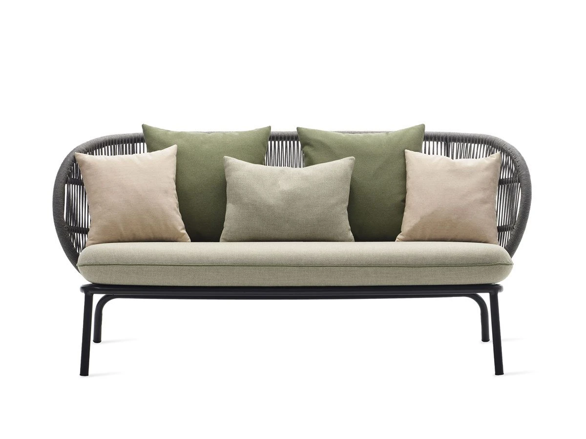 The Kodo outdoor sofa is designed by Studio Segers for the Vincent Sheppard brand. Made with backrest in acrylic rope, frame in powder coated aluminum, while the seat cushion is produced with removable fabric cover.This comfortable outdoor sofa is part of the Kodo outdoor collection. A tactile and comfortable sofa with a rounded back and elegant curves that enrich any outdoor space with style. Together with the dining table, the dining chair and the Kodo armchair, it gives a unique and exclusive vision. Try it and you won’t regret it! Optional protective cover not included in the price.