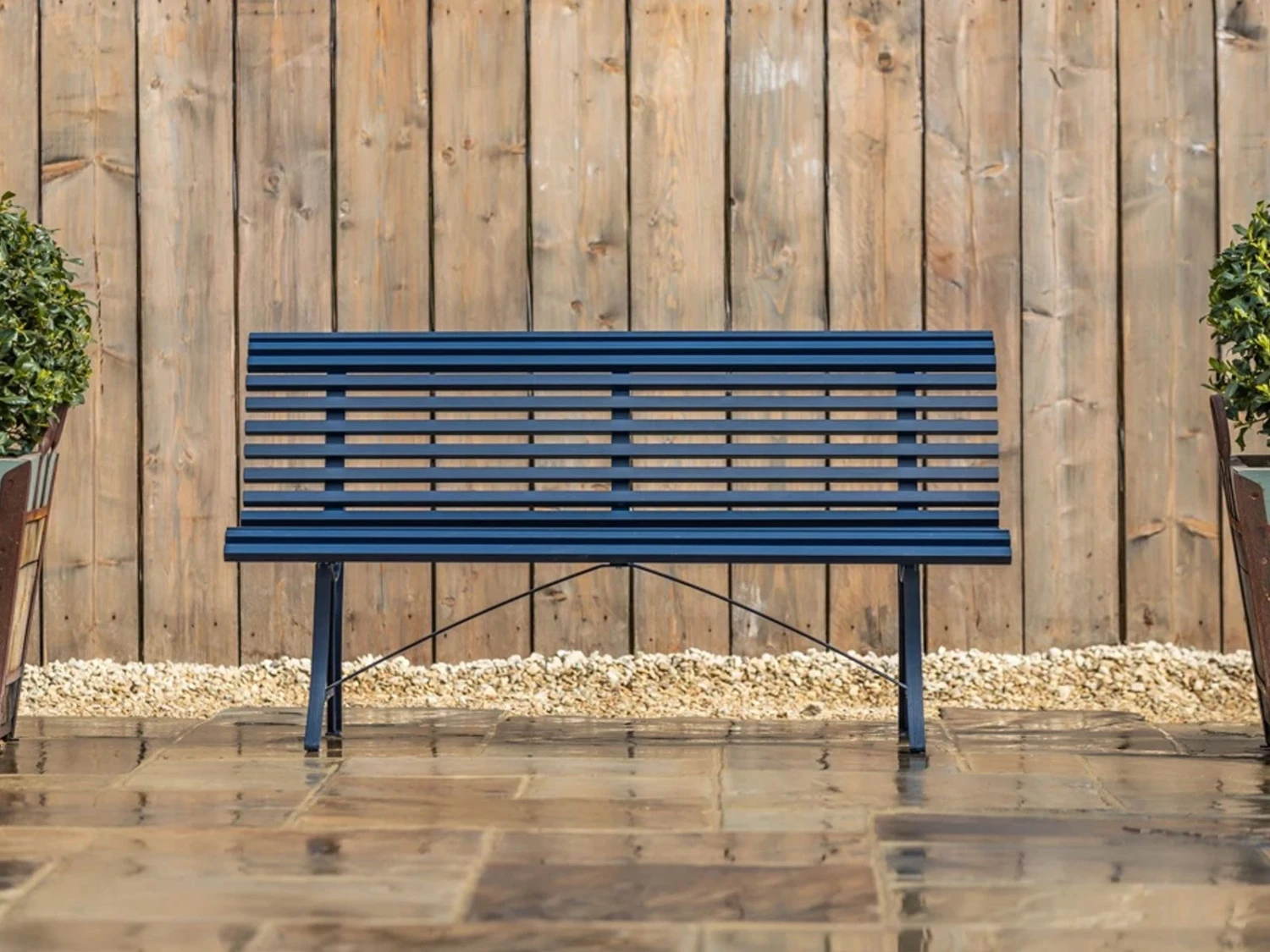 This steel slatted bench, with its timeless shape inspired by the classic outdoor benches of the last century, is an ideal complement for any relaxation area, garden, or public place. Ideal for an outdoor environment, with the guarantee of Fermob quality.