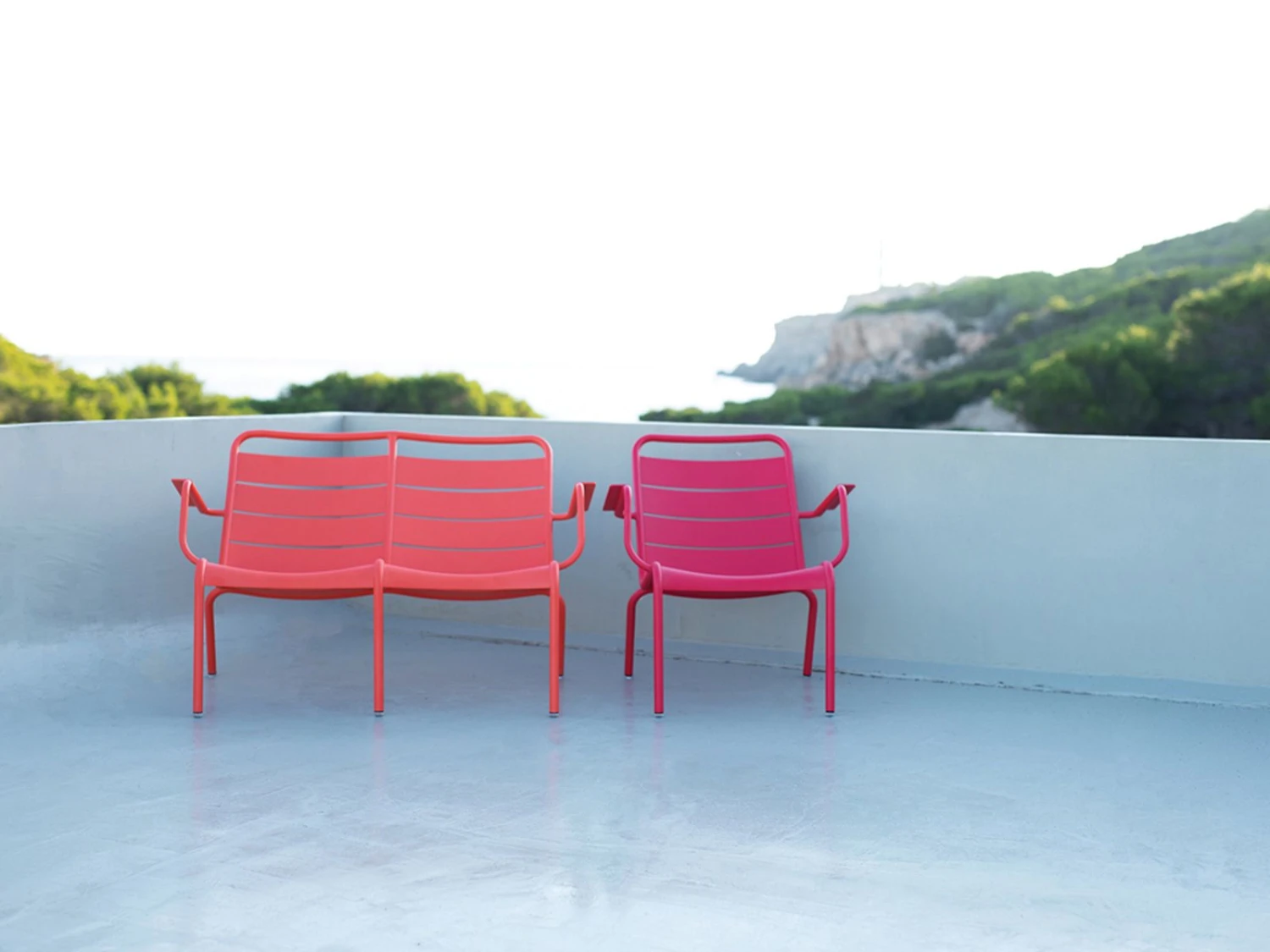 This collection, initially produced for the homonymous gardens in the early 1900s, was reinterpreted by Frédéric Sofia and Fermob in 2004, and offers a range of outdoor furniture with great simplicity, elegance and comfort. A collection in which aluminum is the absolute protagonist thanks to its strength and flexibility associated with ergonomics. Available in various colors, and weatherproof, this collection has expanded over time to include various models. Suitable for both a patio and gardens, terraces, or any outdoor setting, this double armchair, and this collection, will be ideal companions for every day outdoors.