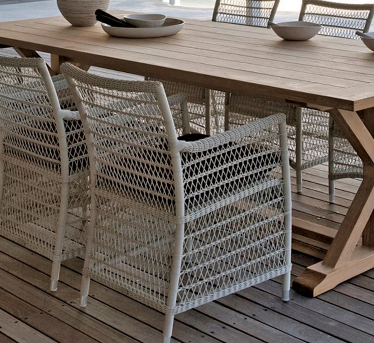 Exotic, rounded touches with a hint of opulence. This collection looks as though it has just been transported from colonial Africa. Every different piece is particularly striking and elegant, ideal to relax in with a cup of tea on the covered terrace or porch.