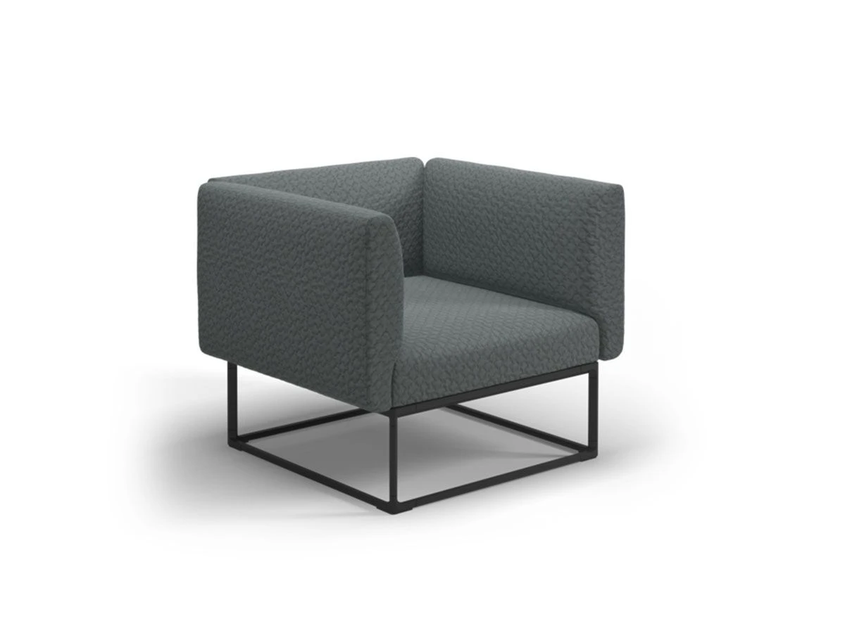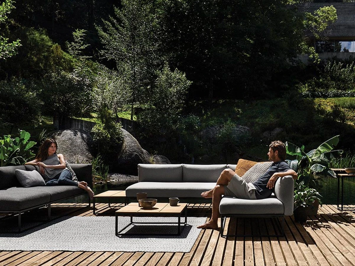 Maya is an outdoor furniture collection designed by Mark Gabbertas for Gloster. The series includes a comfortable lounge chair, a sofa and two coffee tables, available in multiple sizes. The frame of each element is made of meteor coloured powder-coated aluminium. The lounge chair and sofa are covered with the Wave outdoor fabric.
