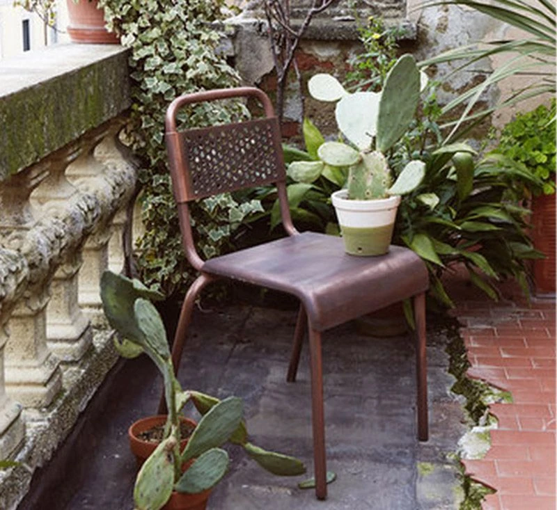 Nizza is a series of chairs and tables for outdoor design is an updated version of the classic French bistro chair. Made of aluminum instead of steel to be more lightweight and easily stackable collection Nizza is not only be of high design but also practical; perfect for local outdoor restaurant at the bar but also for private spaces like terraces or gardens.