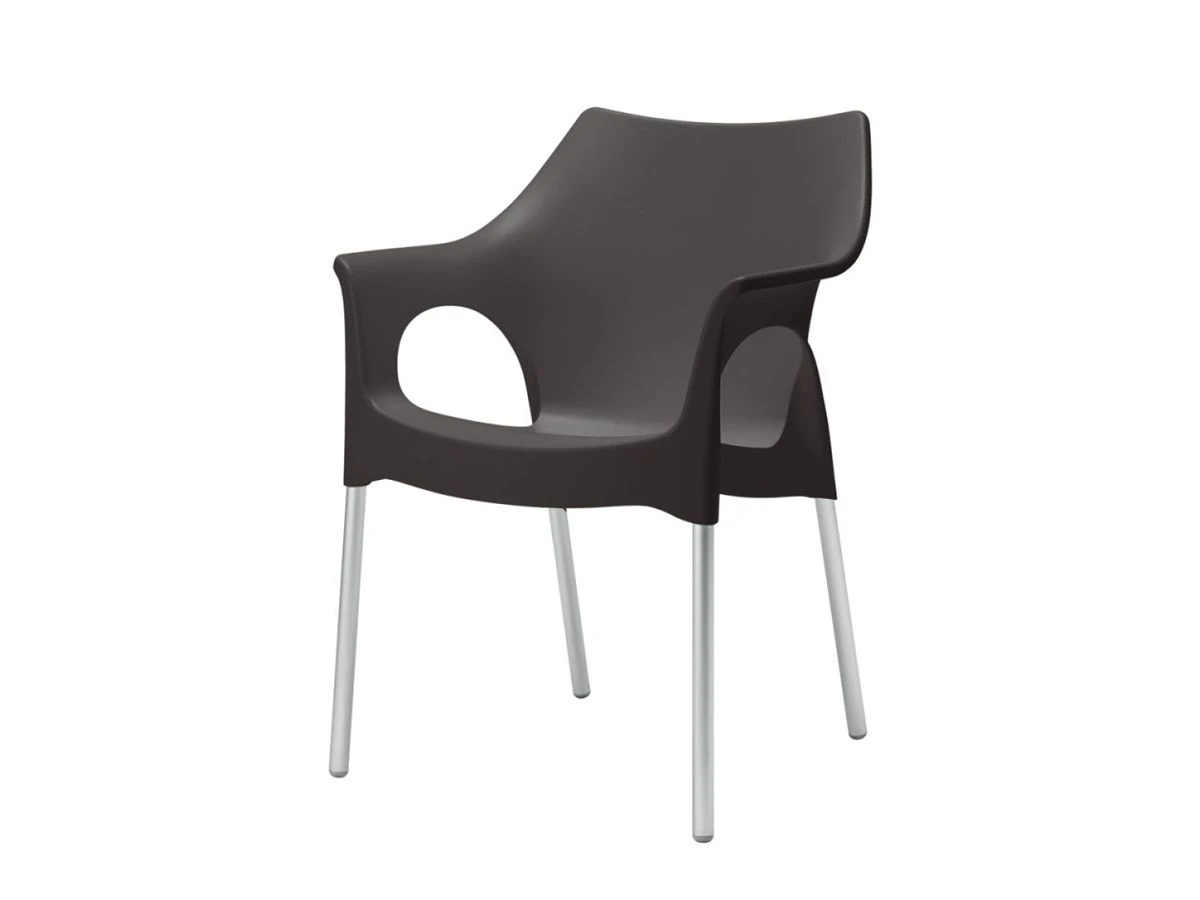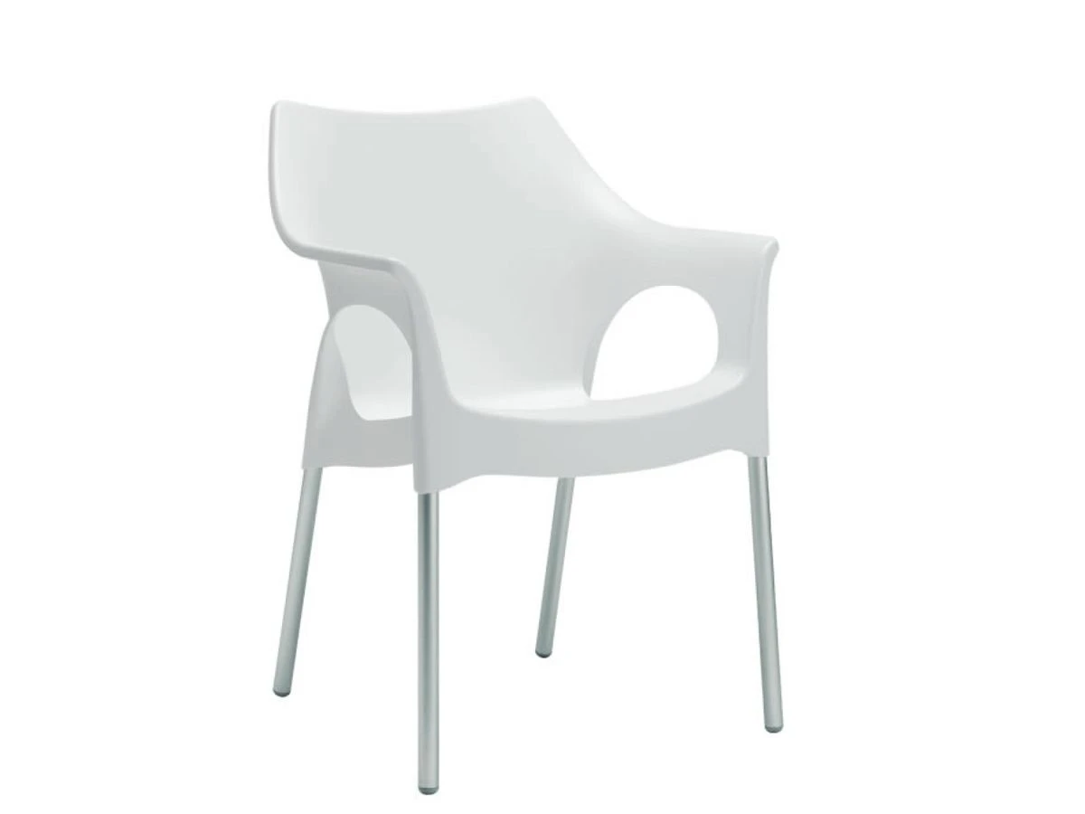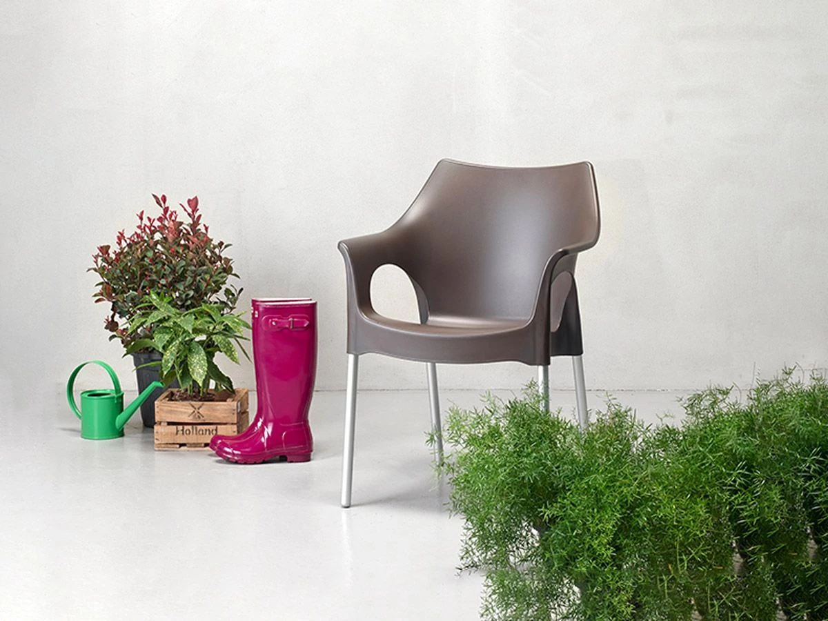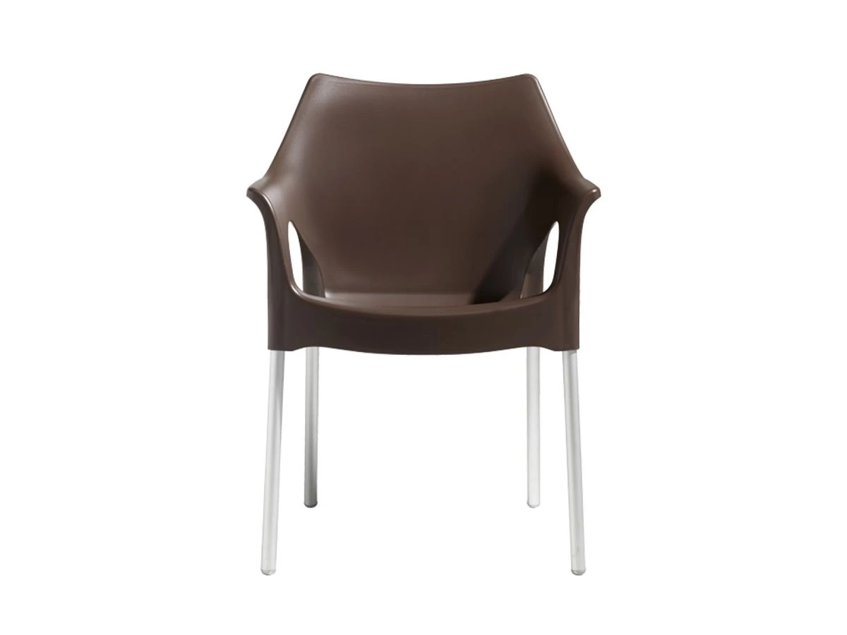 This Armchair, entirely made of technopolymer with anodized aluminum legs, is resistant to atmospheric agents and requires minimal maintenance. Elegant, with a fresh and contemporary design, and available in various finishes as well as stackable, this chair will immediately be the absolute protagonist both in a patio and in a Living room, bringing elegance and color to any environment.