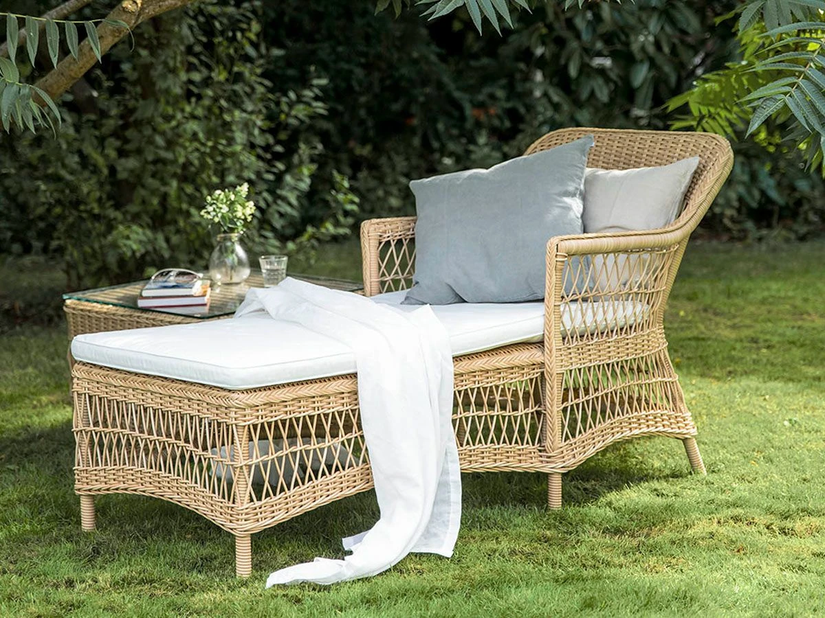 Olivia Chaiselongue is an elegant seat from Sika Design’s Georgia collection. The classic style that distinguishes the entire collection is inspired by the nineteenth-century furnishings of colonial Britain and traditional Danish wicker furniture.